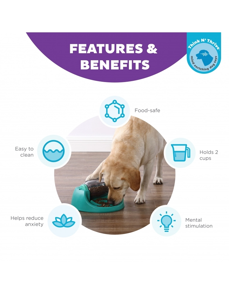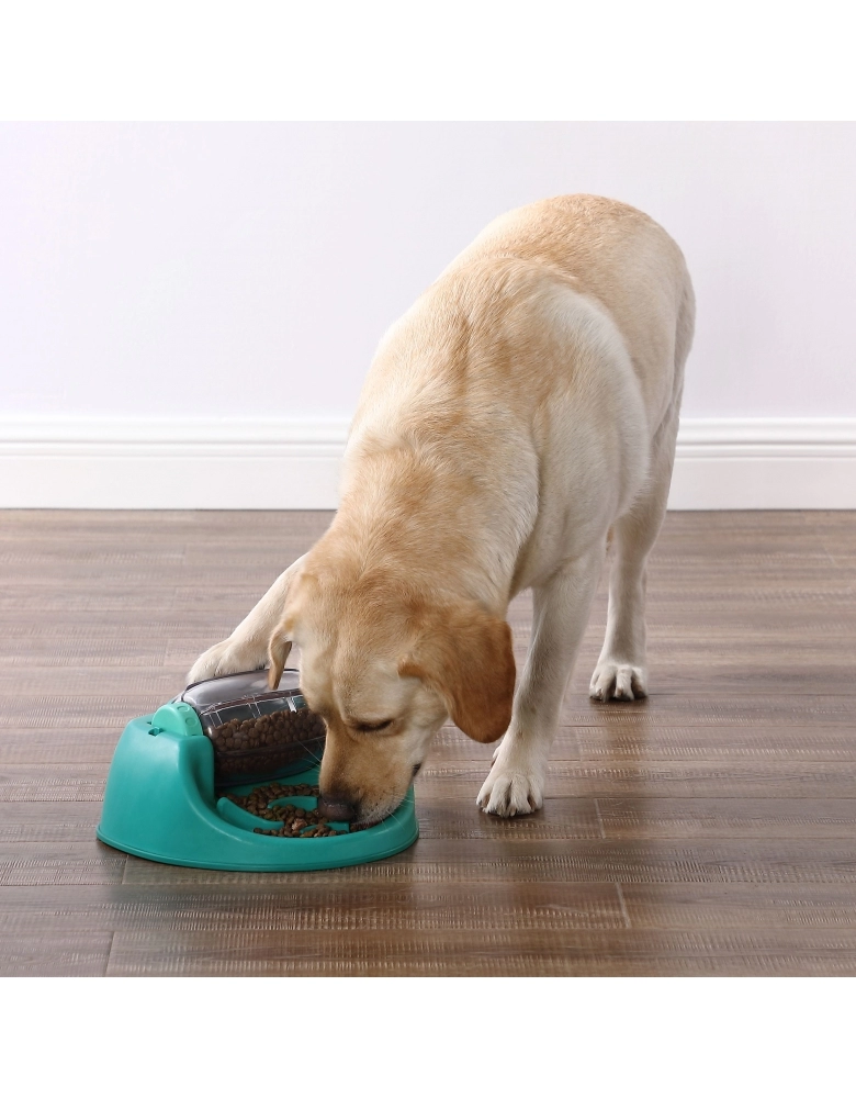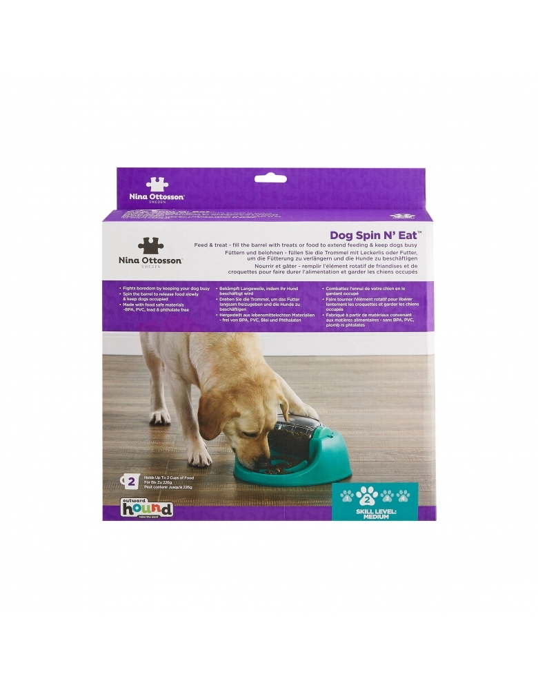 Comedouro lento misturado com quebra cabeças, nível 2, onde você enche o barril com alimento e o cão vai movendo com a patinha e liberando gradativamente. Perfeito no combate ao tédio porque mantém o cão ocupado e feliz. As ranhuras na saída do alimento impedem que o cão abocanhe. Ele é obrigado a comer lentamente (até 10 vezes mais lento que um comedouro comum), o que é muito mais saudável. Feito com plástico de grau alimentar, sem BPA, PVC ou ftalato. Perfeito para cães de todas as idades, tamanhos ou raças. Fácil de limpar. Instruções de uso: 1 - Remova o barril do local e as tampas laterais dele. 2 – Preencha com alimento ou petiscos. A capacidade do barril é de 2 xícaras. 3 – Coloque as tampas laterais no barril e devolva-o para seu lugar. 4 – E que comece a brincadeira! Mostre ao seu cão como o barril se move e observe-o desvendar o segredo do brinquedo.