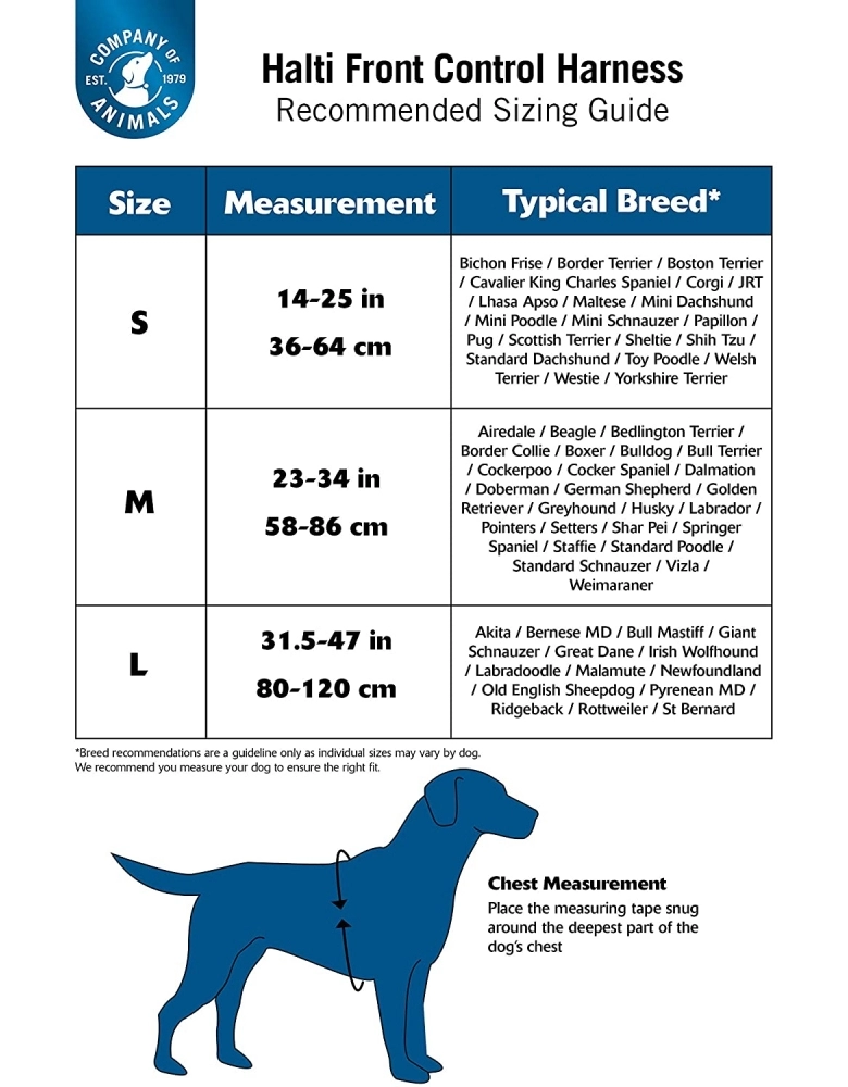 Halti Front Control Harness Peitoral que evita que o cão puxe. Controla seu cão gentilmente pela parte frontal do peito. Ideal para cães que possuem nariz achatado e que não podem usar coleira de face. Fácil de colocar e de usar. Ideal para ser usado com guia de duas pontas
