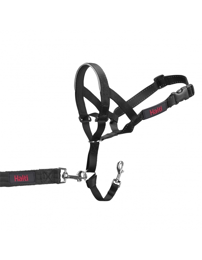 Halti Headcolalr Coleira de face (ou de cabresto) que impede o cão de puxar. Controla e direciona gentilmente o seu cão pela cabeça. Fácil de ser colocada e feita com material leve e reflexivo. Ideal para ser usado juntamente com guia de duas pontas. Modo de usar: Manual com versão em português incluso.