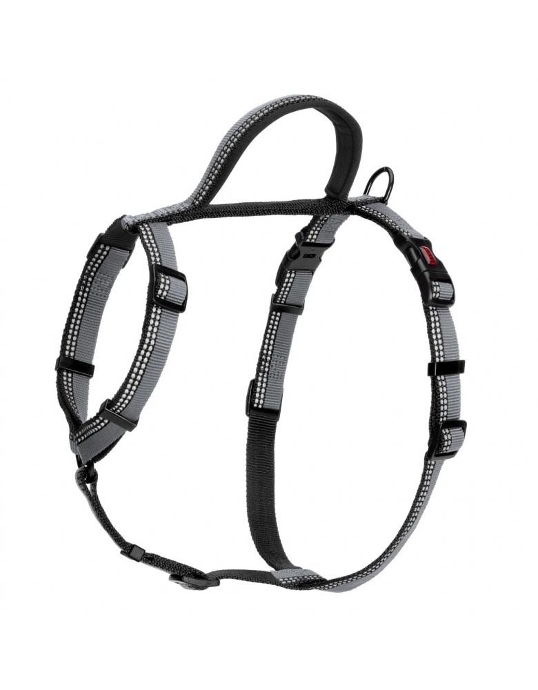 Walking Harness – Peitoral com pontos reflexivos para visibilidade total durante o dia ou à noite. Possui um pegador traseiro para controle mais próximo, auxiliar subir e descer de um veículo ou degraus, por exemplo. Tem dois pontos de conexão, um atrás e outro na frente para maior segurança e controle anti-puxão e adestramento. Possui 5 pontos de ajuste para maior conforto e segurança.
