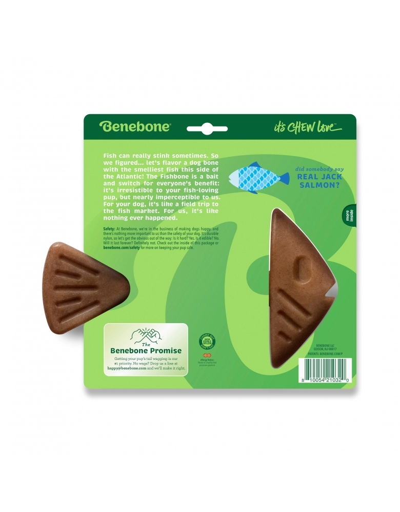 Peixes podem realmente cheirar muito mal algumas vezes. Então pensamos... Vamos oferecer aos cães o peixe mais “cheiroso” deste lado do Atlântico! Fishbone é uma isca que vai beneficiar todo mundo. É irresistível para o seu melhor amigo que instintivamente ama peixe, mas cujo cheiro é imperceptível para nós. Para seu cão é como um passeio no mercado de peixes e para nós é como se nada nunca tivesse acontecido.