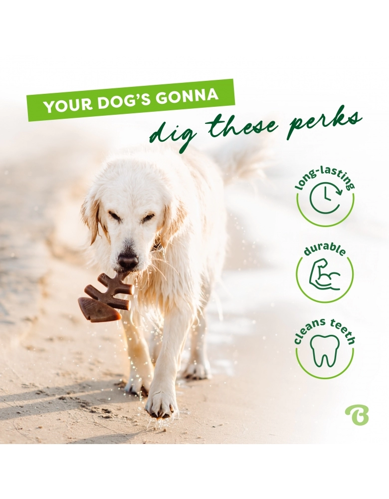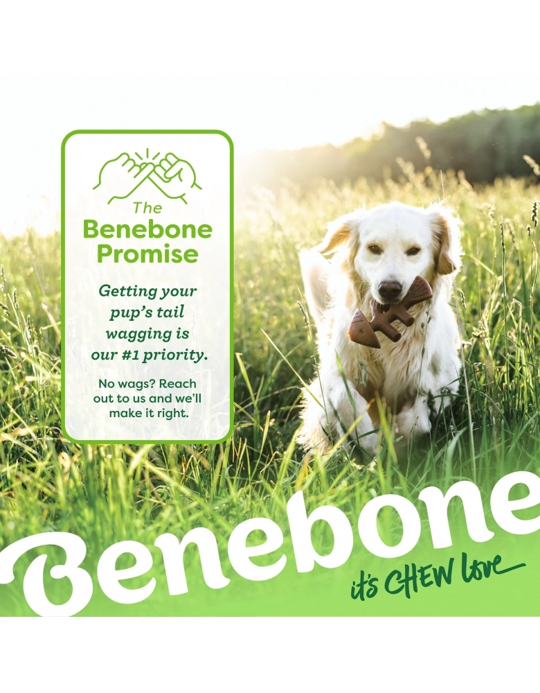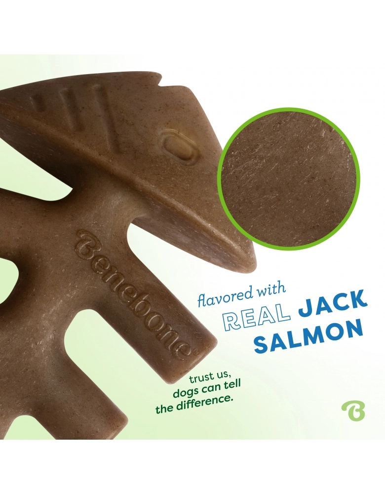 Benebone é um brinquedo de roer feito de Nylon e algum ingrediente natural. Nesse caso, salmão.