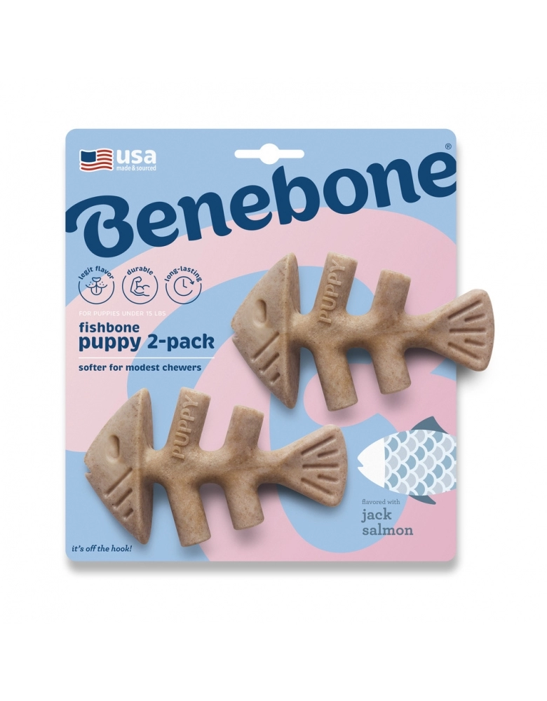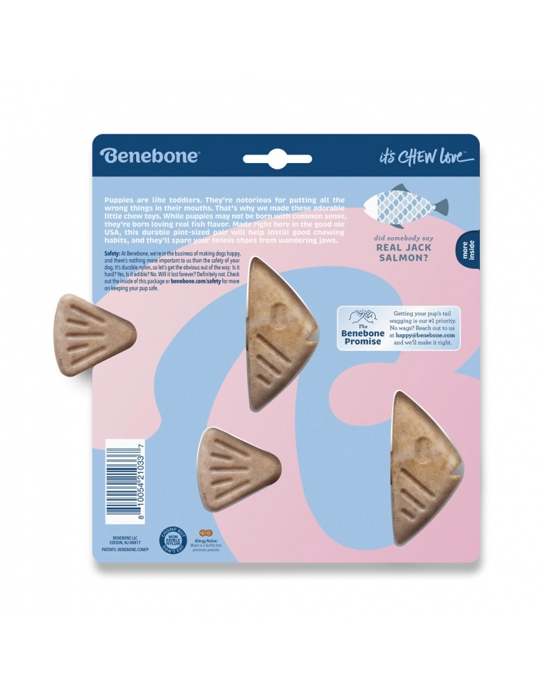 Benebone é um brinquedo de roer feito de Nylon e algum ingrediente natural. Nesse caso, salmão.