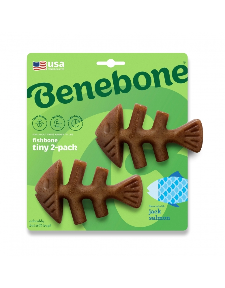 Benebone é um brinquedo de roer feito de Nylon e algum ingrediente natural. Nesse caso, salmão.