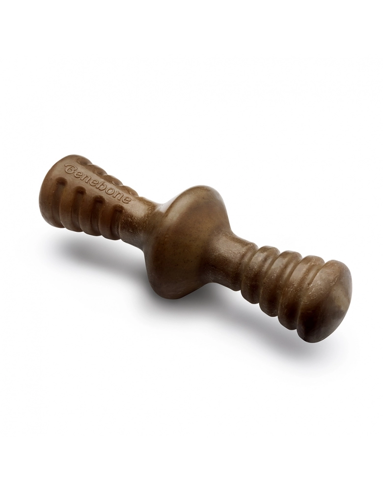 Benebone é um brinquedo de roer feito de Nylon e algum ingrediente natural. Nesse caso, bacon.