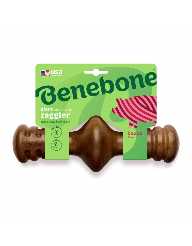 Benebone foi Desenvolvido para proporcionar diversão, além do sabor. Na vida, a perseguição pode ser mais divertida que a conclusão da caçada. Constantemente em movimento, o Zaggler é a forma mais divertida de brincar de pega-pega com bacon!