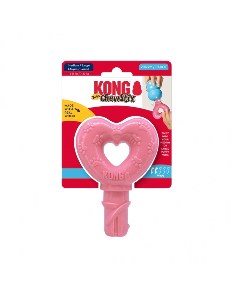 KONG ChewStix Puppy Twist é o primeiro brinquedo de roer de seu cão, feito com Nylon e Madeira de verdade formulado com toda segurança para seu filhote. Feito para direcionar desde as primeiras fases da vida, a mordida se seu cão para objetos seguros e desejáveis em vez de móveis e objetos da casa. Ele se encaixa no KONG Puppy para uma solução perfeita para a troca de dentes do seu filhote. Contém madeira de verdade para atrair seu cão, e uma suave fragrância de coco. Possui textura perfeita, não muito rígida e é uma solução duradoura para a fase de troca de dentes de seu cão