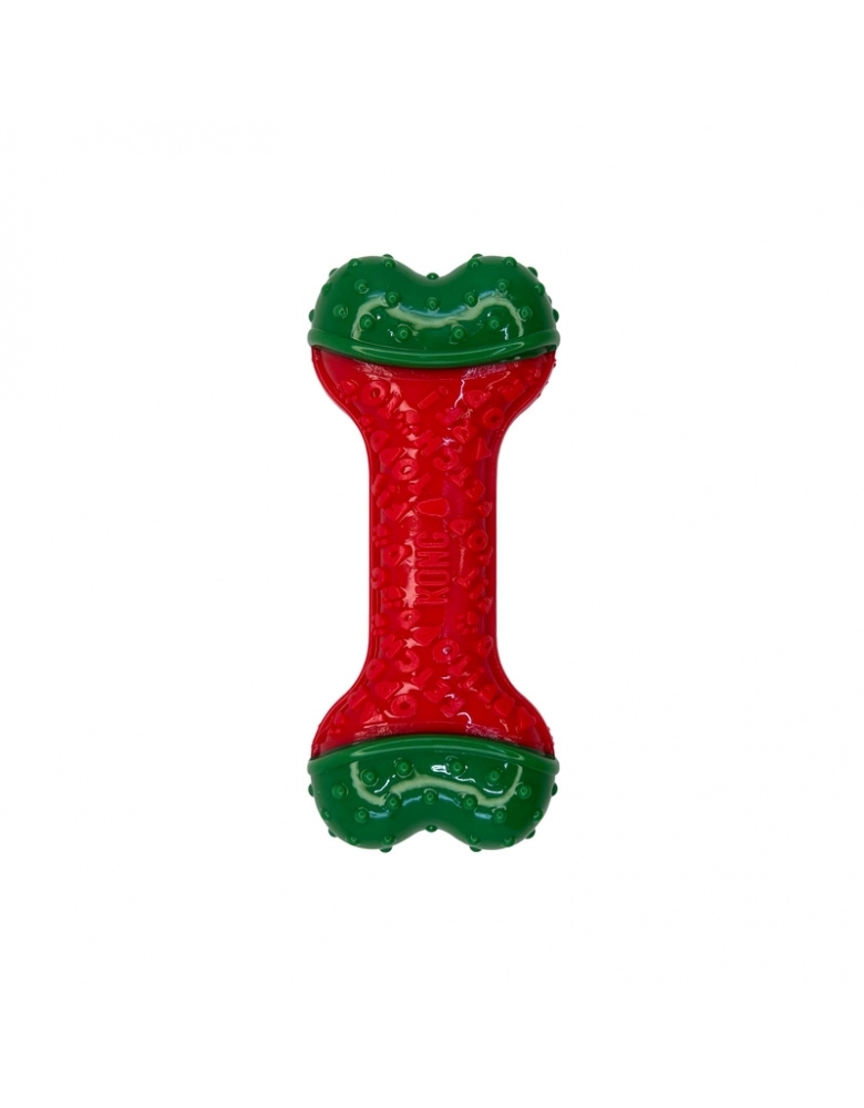 O osso KONG Holiday CoreStrength Bone nas cores brilhantes das festas de fim de ano foi criado para proporcionar uma satisfação duradoura ao mastigar, com um núcleo durável de várias camadas criado pela KONG. A textura externa prolonga a mastigação e ajuda a limpar os dentes e as gengivas entre todas as guloseimas do feriado. Ideal para brincadeiras independentes e diversão interativa durante e após as festas de fim de ano