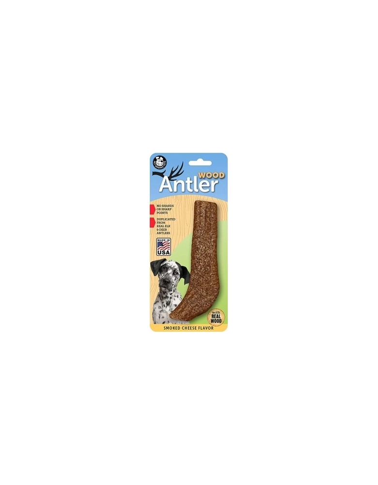 Antler Wood é um brinquedo de roer, fabricado com 100% nylon, madeira de verdade e com sabor de queijo defumado para deixar seu cão estimulado. Como roer é um instinto natural de seu cão, oferecer Antler Wood poderá salvar suas cadeiras, móveis e sapatos. Direcionar o hábito de roer dos cães é muito mais saudável que reprimir. Fabricado com design exclusivo que simula os chifres de alce ou veado. Não tem pontas ou partes que podem machucar.