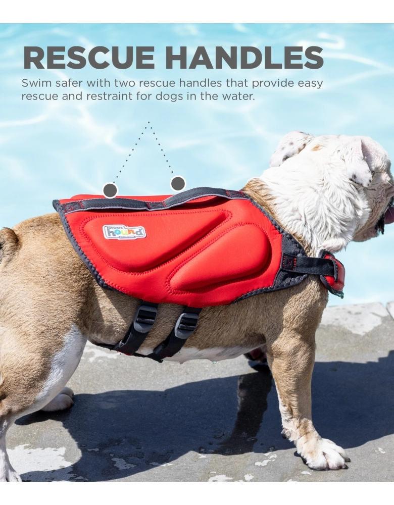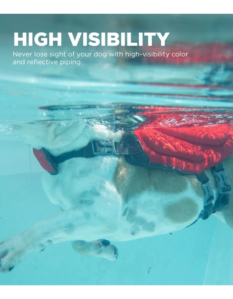 Colete salva-vidas para cães, desenvolvido para manter a máxima flutuação de cães iniciantes e também isolamento térmico para dias mais frios. Possui boias envelopadas em tecido de Neoprene para garantir resistência e conforto. Possui um suporte de pescoço para manter a cabeça do cão fora da água. Possui alças superiores para retirar o cão da água em caso de emergência. Os ajustes das alças permite conforto e segurança tanto dentro como fora da água. Tamanhos XS e SM possuem uma alça única. Tamanhos maiores possuem uma alça dupla.