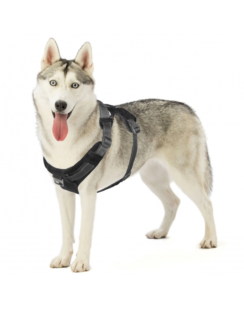 Esta peitoral possui tiras ajustáveis e corpo acolchoado para prover o máximo conforto sem abrir mão da máxima segurança. Possui 2 argolas em D, uma nas costas e outra no peito, para guias de ponta dupla e treinamento para não puxar. É feito para durar, pois possui tecido ante rasgo e costuras super reforçadas. Tem 2 bolsos para carregar o essencial. Possui um local para que escreva o nome do cão e seu telefone. Possui material refletivo para maior visibilidade e segurança à noite. Um dos bolsos serve para colocar saquinhos cata-caca e removê-los facilmente.