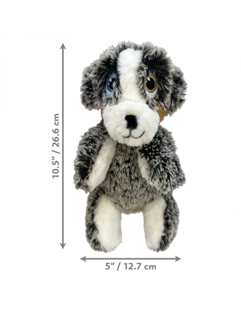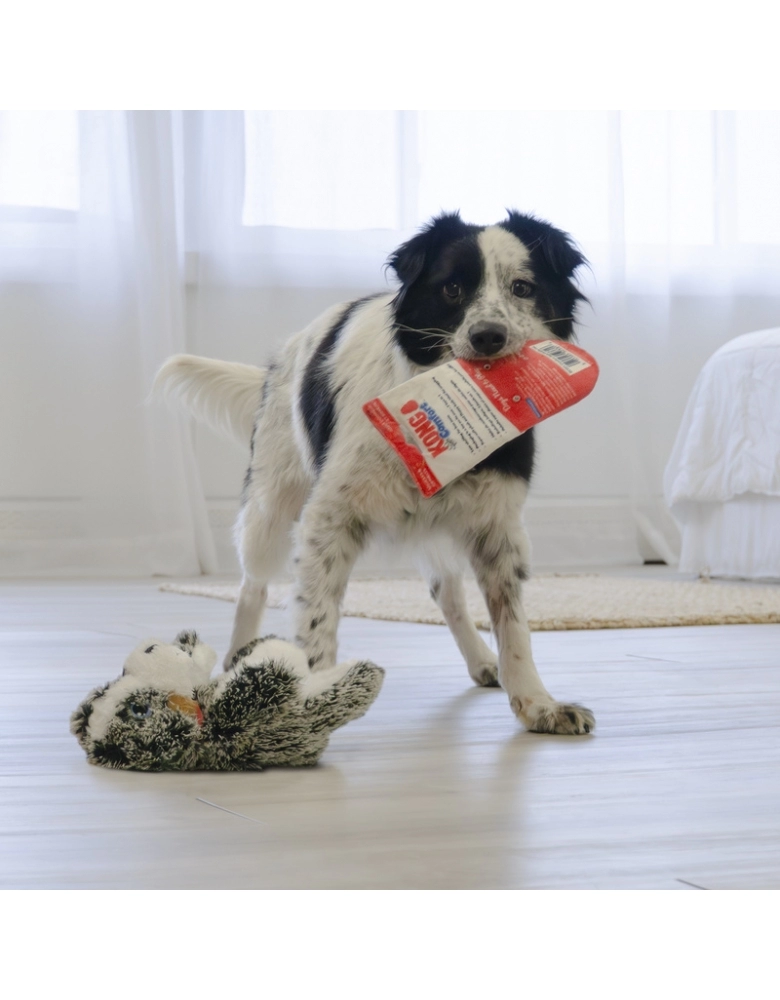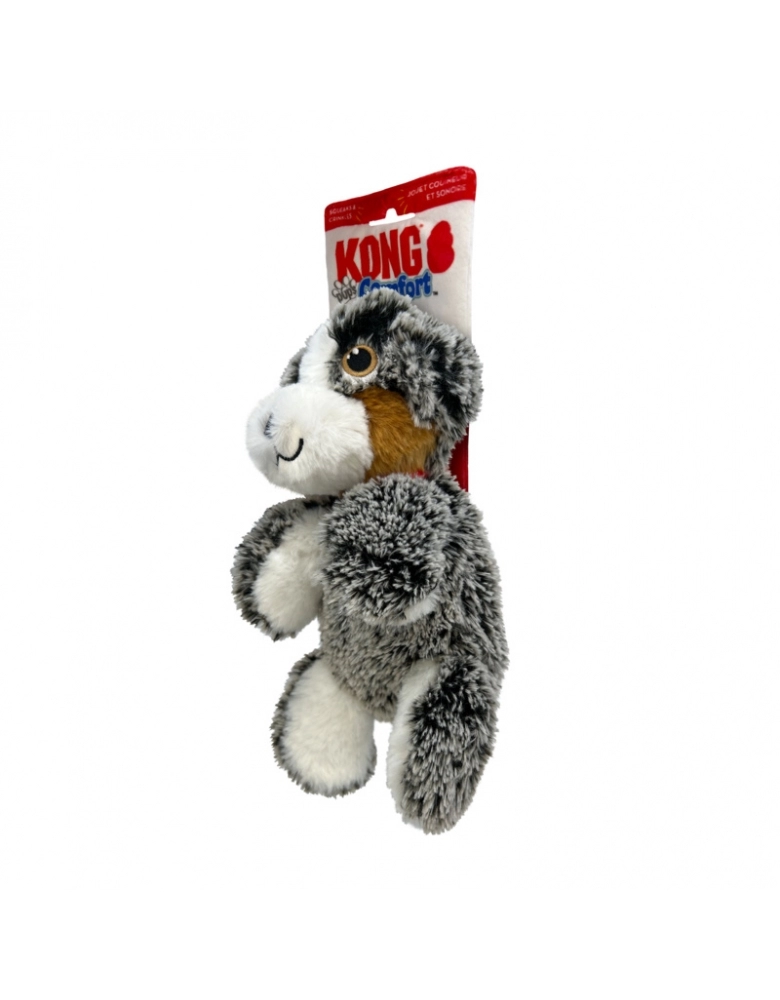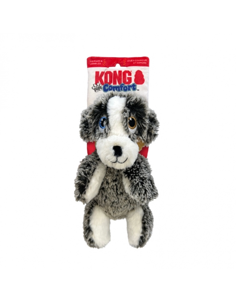 KONG Comfort Pups é um brinquedo desenvolvido para cães de mordida leve e não destruidores. Pelúcia super macia e com o corpo bem mole é ideal para sonecas e aconchego. Possui uma pelúcia densa, porém menos enchimento, o que proporciona menos bagunça, caso sejam rompidas. Possui apito para prolongar as brincadeiras. São 2 brinquedos em 1. A embalagem também é brinquedo e possui estalidos para estimular o cão a brincar.