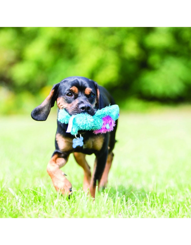 KONG Cozie é um brinquedo interativo, ideal para brincadeiras dentro de casa. Possui apito para aumentar ainda mais o engajamento. Destinado a brincadeiras interativas leves e aconchegar. Deve ser supervisionado o tempo todo. Ao terminar de brincar, retire do cão caso não esteja seguro que ele não irá destruí-lo. Importante: Não é um brinquedo de mastigação. Embora feito com material resistente, se deixado com cão destrutivo, ele poderá destruir rapidamente! Designado a cães de mordida moderada. Para cães de mordidas mais fortes, procure um brinquedo KONG de borracha.