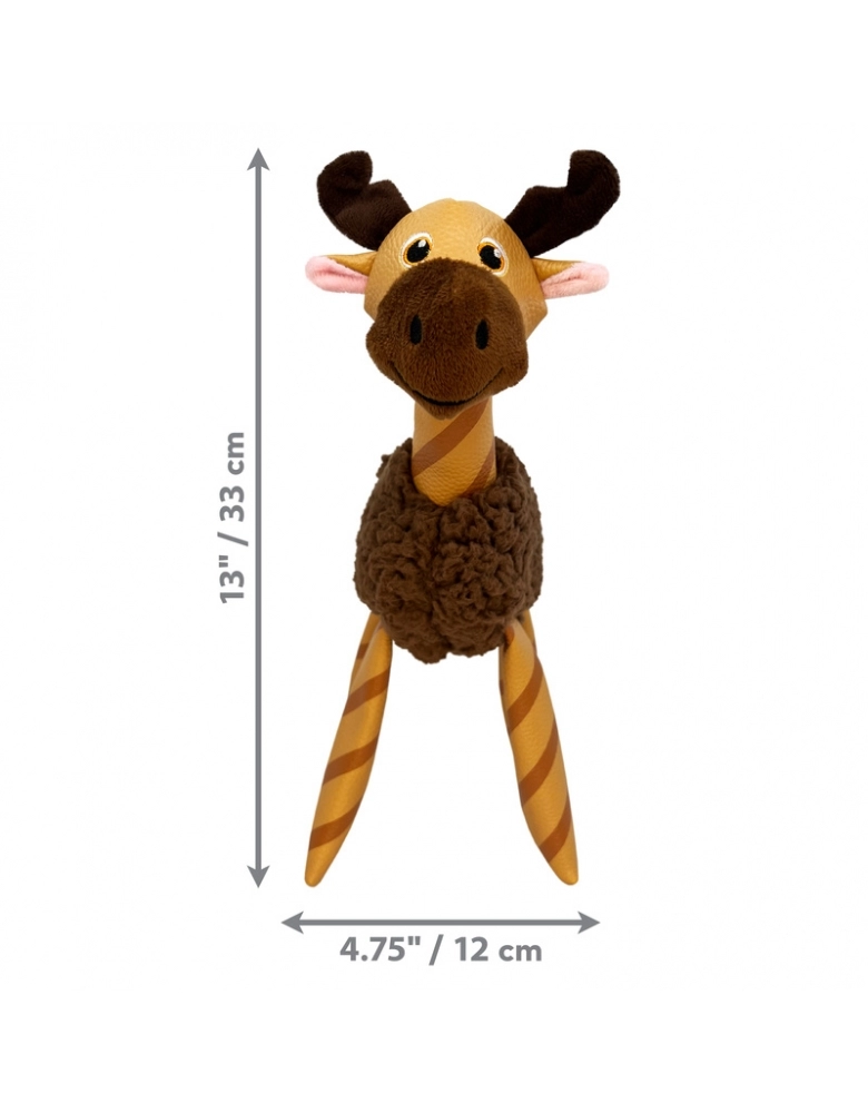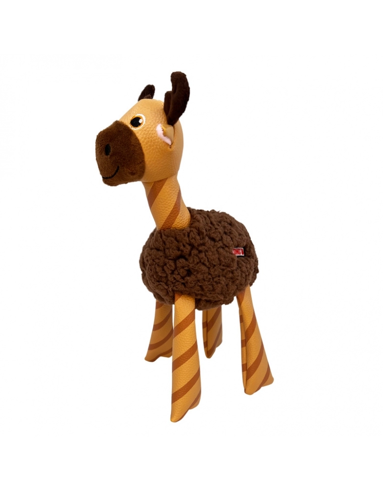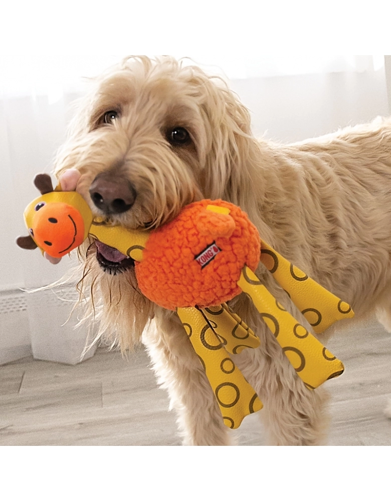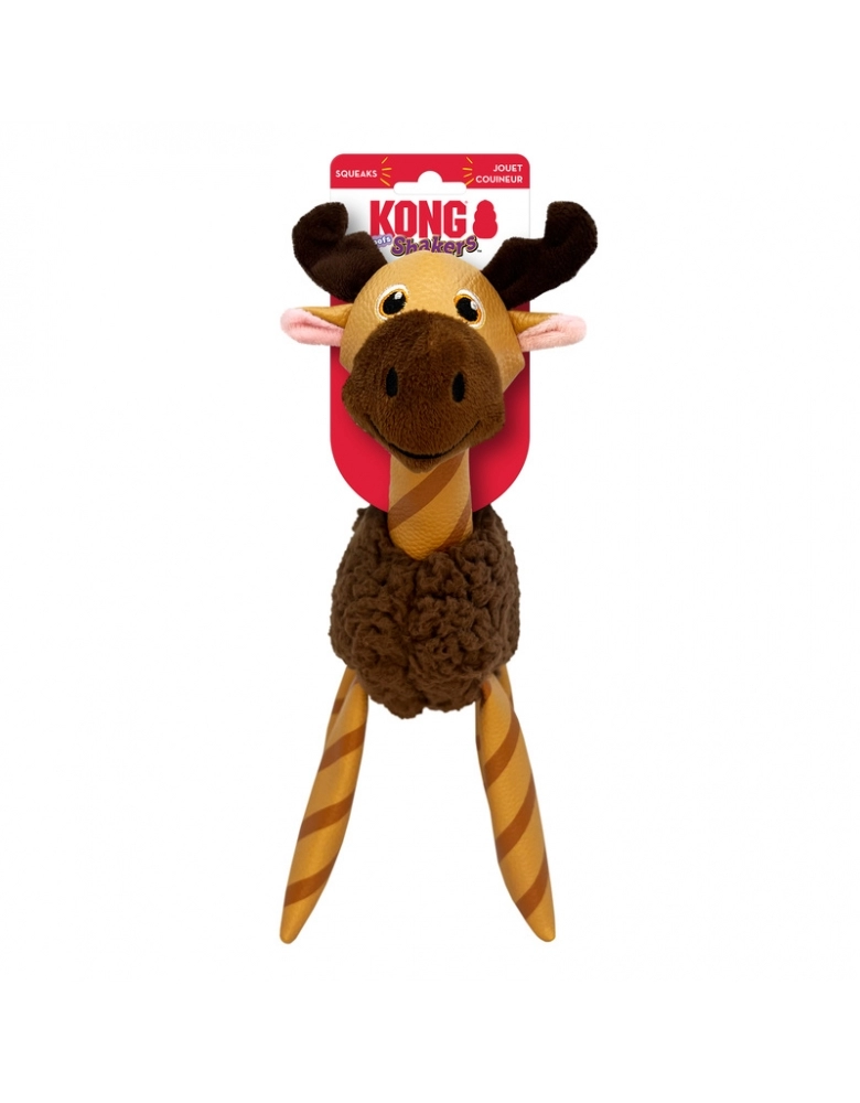 KONG Floofs Shakers um brinquedo leve, com tamanho razoável, que é convidativo para brincadeiras dentro de casa. Mesmo que atirado em algum objeto de valor, como é leve, dificilmente causará um prejuízo. Possui apito e estalidos que tornam a brincadeira ainda mais atrativa e duradoura. O seu corpo achatado o torna fácil agarrar por cães de qualquer tamanho.