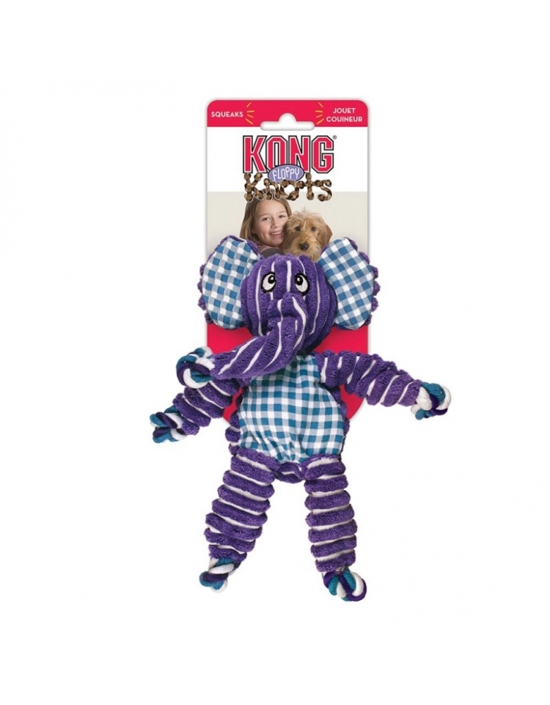 KONG FLOPPY KNOTS® é um brinquedo feito com os ingredientes mais seguros e resistentes do mercado. Esses brinquedos macios, porém resistentes, possuem em seu interior uma corda com nós, que satisfazem instintos naturais dos cães, além de possuir estufagem mínima, evitando bagunça caso o cão consiga perfutar o brinquedo. Contém um apito para tornar a brincadeira ainda mais animada e estimulante para o cão. Desenvolvido para cães de mordida moderada ou leve. Para cães com mordida destrutiva, opte por brinquedos KONG de borracha.