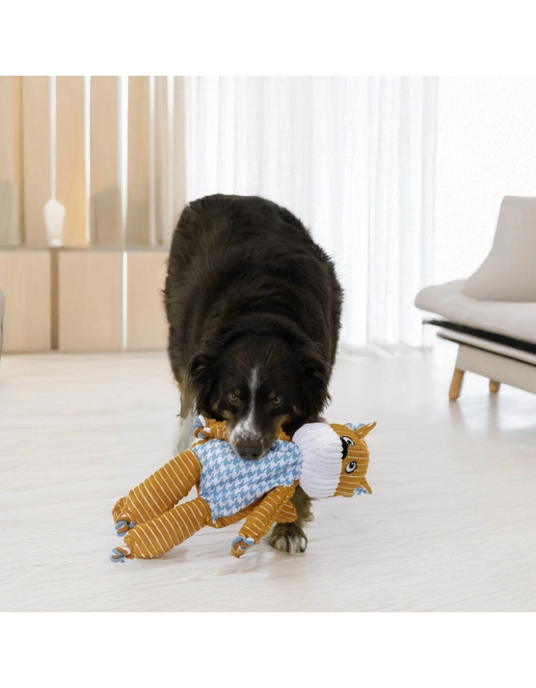 Kong Floppy Knots Jumbo é um brinquedo gigante ideal para qualquer tamanho de cachorro. Incrivelmente resistente, possui corda com nós em toda sua extensão para proporcionar brincadeiras de cabo de guerra e de jogar e buscar, super divertidas. Possui pouco enchimento, o que faz com que, em caso de rasgos, não haverá sujeira e forração de pelúcia espalhados pela casa. É um ótimo brinquedo para aconchegar. Ideal para cães com mordidas leves a moderadas. Possui apito para aumentar o engajamento. O tamanho Jumbo promove ainda mais diversão para todos os tamanhos de cães.