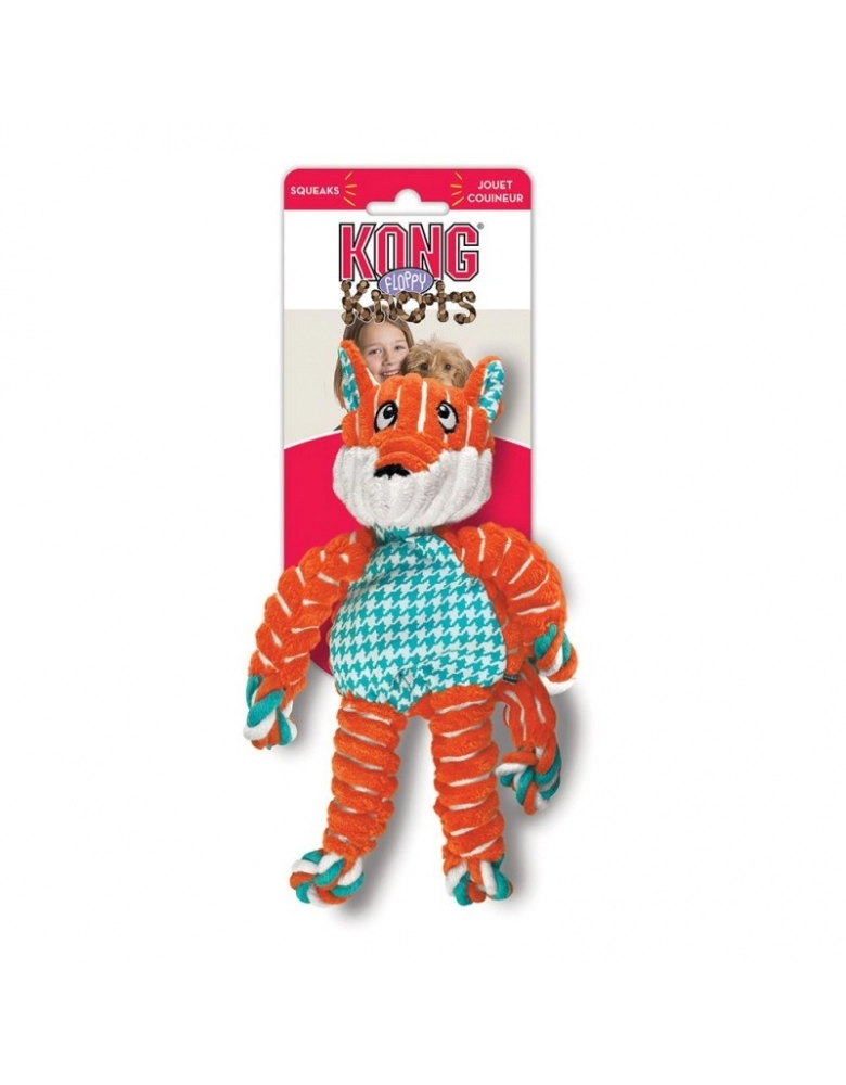 KONG FLOPPY KNOTS® é um brinquedo feito com os ingredientes mais seguros e resistentes do mercado. Esses brinquedos macios, porém resistentes, possuem em seu interior uma corda com nós, que satisfazem instintos naturais dos cães, além de possuir estufagem mínima, evitando bagunça caso o cão consiga perfutar o brinquedo. Contém um apito para tornar a brincadeira ainda mais animada e estimulante para o cão. Desenvolvido para cães de mordida moderada ou leve. Para cães com mordida destrutiva, opte por brinquedos KONG de borracha.