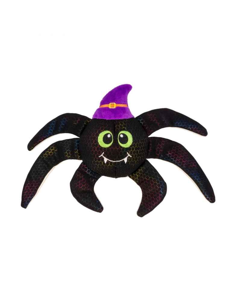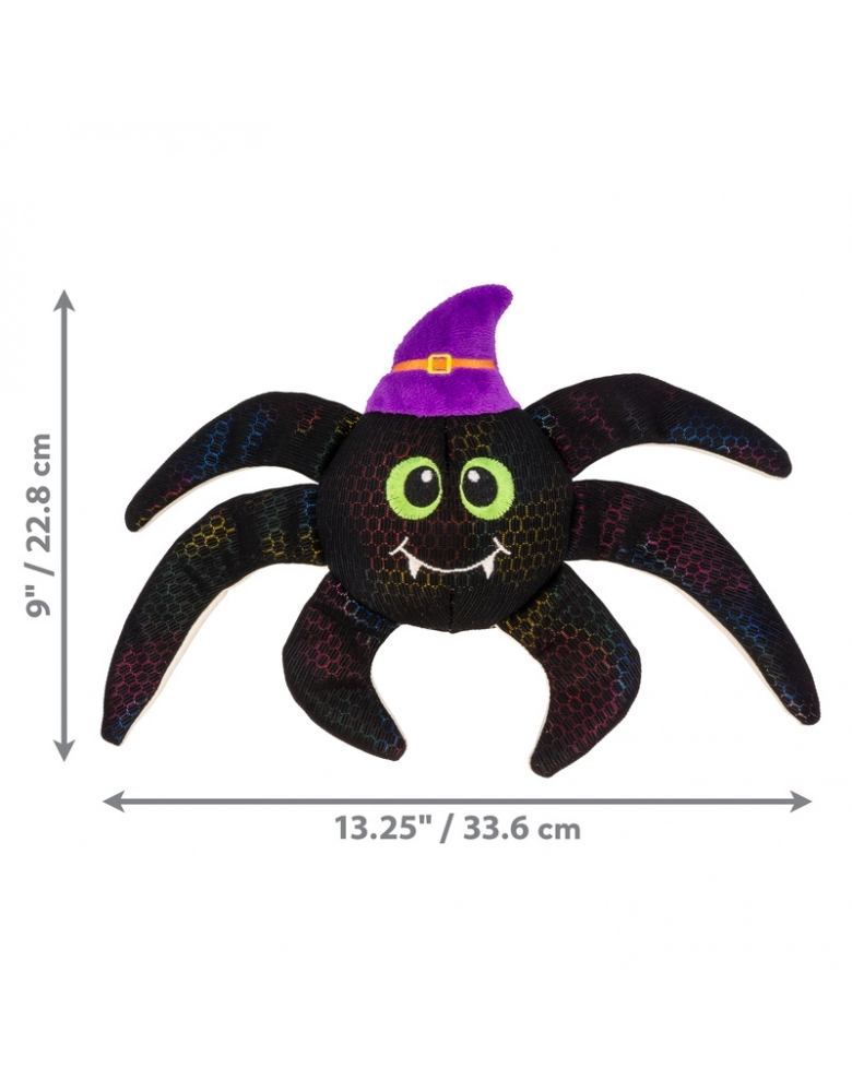 KONG Haloween Shakers Shimmy Spider é um brinquedo desenvolvido para cães de mordida leve e não destruidores. Desenhado com tamanho grande com pernas gigantescas com estalidos que satisfazem o instinto de chacoalhar a presa, dos cães. Possui apito, para aumentar o engajamento. Perfeito pra ser jogado em brincadeiras de jogar e trazer. Importante: Não é um objeto de roer. Não deve ser deixado sozinho com o cão nem por alguns minutos, até ter certeza de que o cão não irá destruí-lo. Destinado à cães com mordidas leves. Para cães com mordida forte e destruidores, prefira os brinquedos de borracha natural. Acabada a brincadeira, guarde para a próxima.