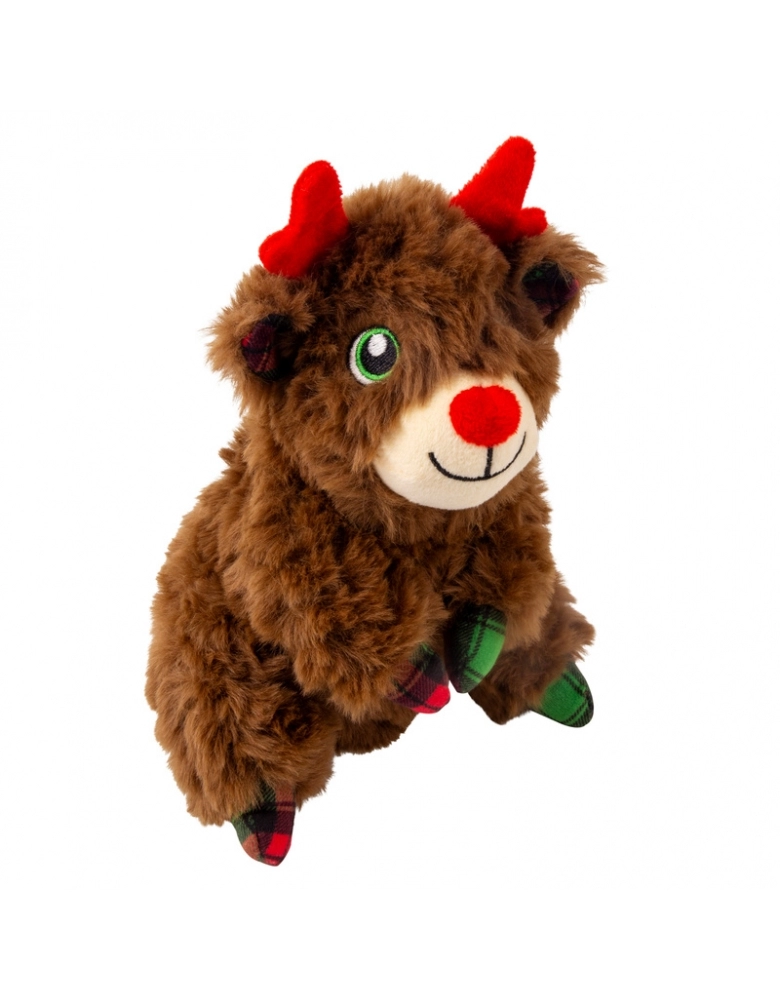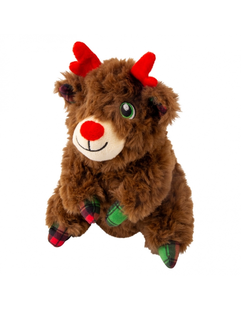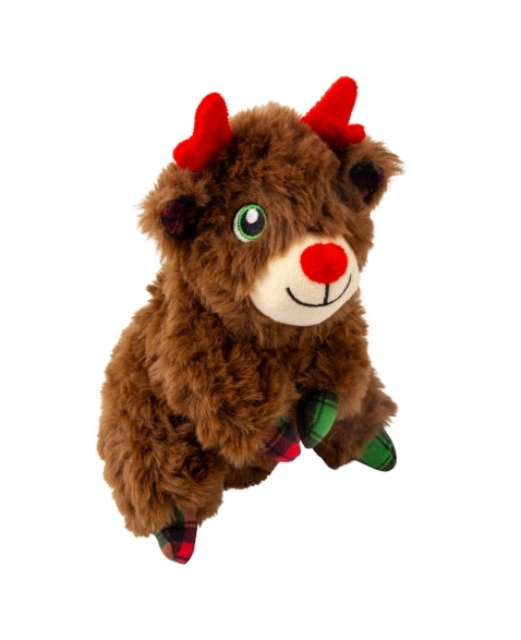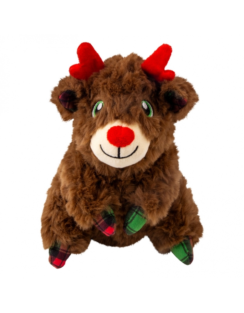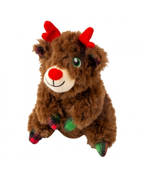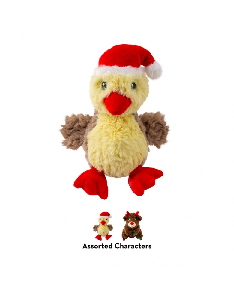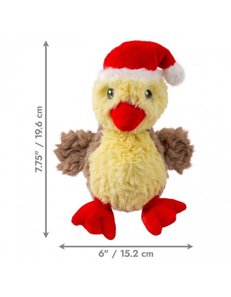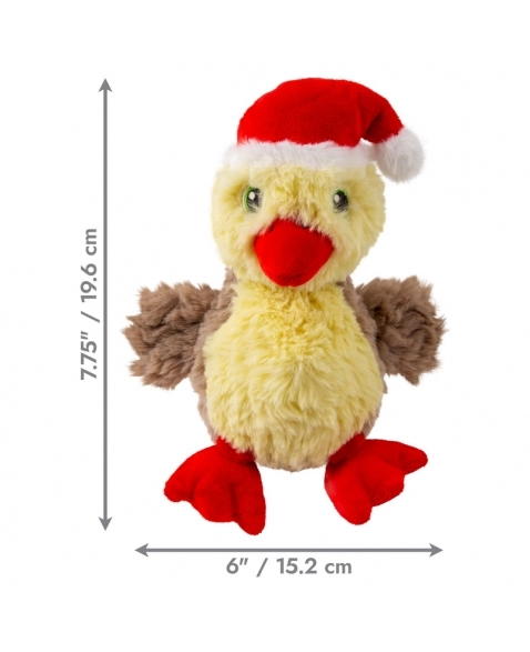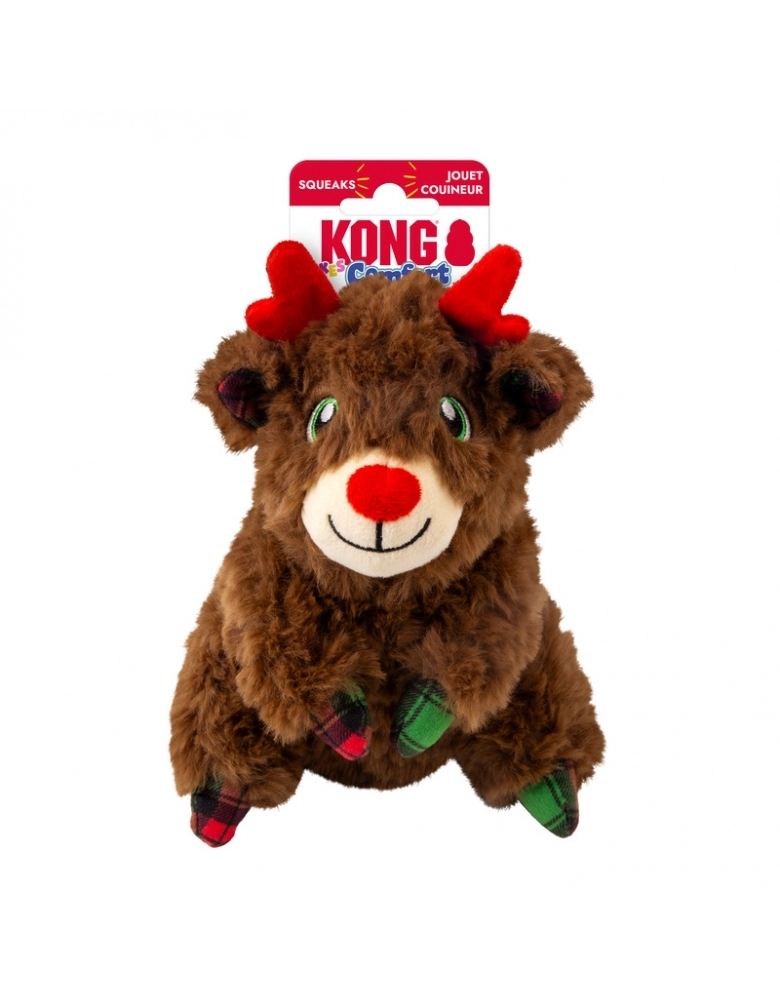 O brinquedo KONG Holiday Comfort Tykes é possui material de pelúcia irresistivelmente macio para os aconchegos essenciais em todas as expedições de brincadeiras. Essas companheiras de aventura com camada dupla, são ideais para a ação em ambientes fechados - desde os cumes do sofá até as caminhadas no porão. Um apito grave e grande atrai e prolonga a diversão. O apito pode ser removido pelas costas da pelúcia, através de uma abertura fechada por velcro.