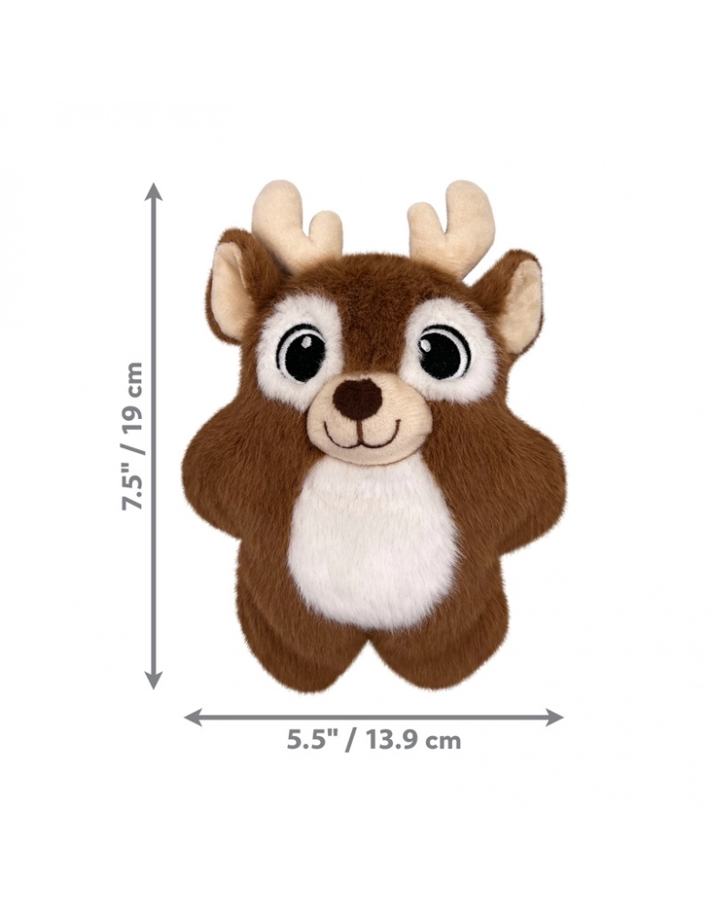 O KONG Holiday Snuzzles Reindeer é um briquedo cheio de diversão, com um apito de corpo inteiro com um som longo e alto. O exterior de pelúcia é ótimo para se aconchegar nas festas de fim de ano. A sensação densa na boca aumenta o envolvimento, recompensando a mastigação adequada a cada mordida. Ideal para a diversão dentro de casa quando o tempo lá fora está terrível, o formato plano é ideal para cães de todos os tamanhos. Indicado para cães de mordida leve.