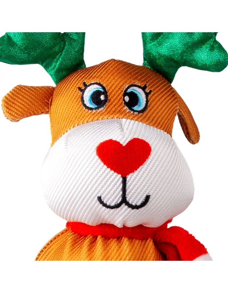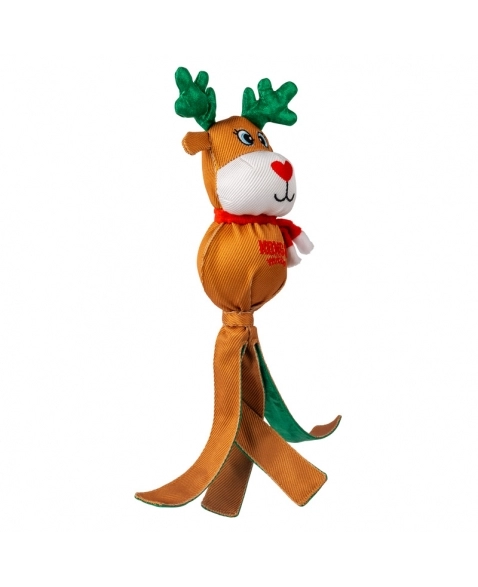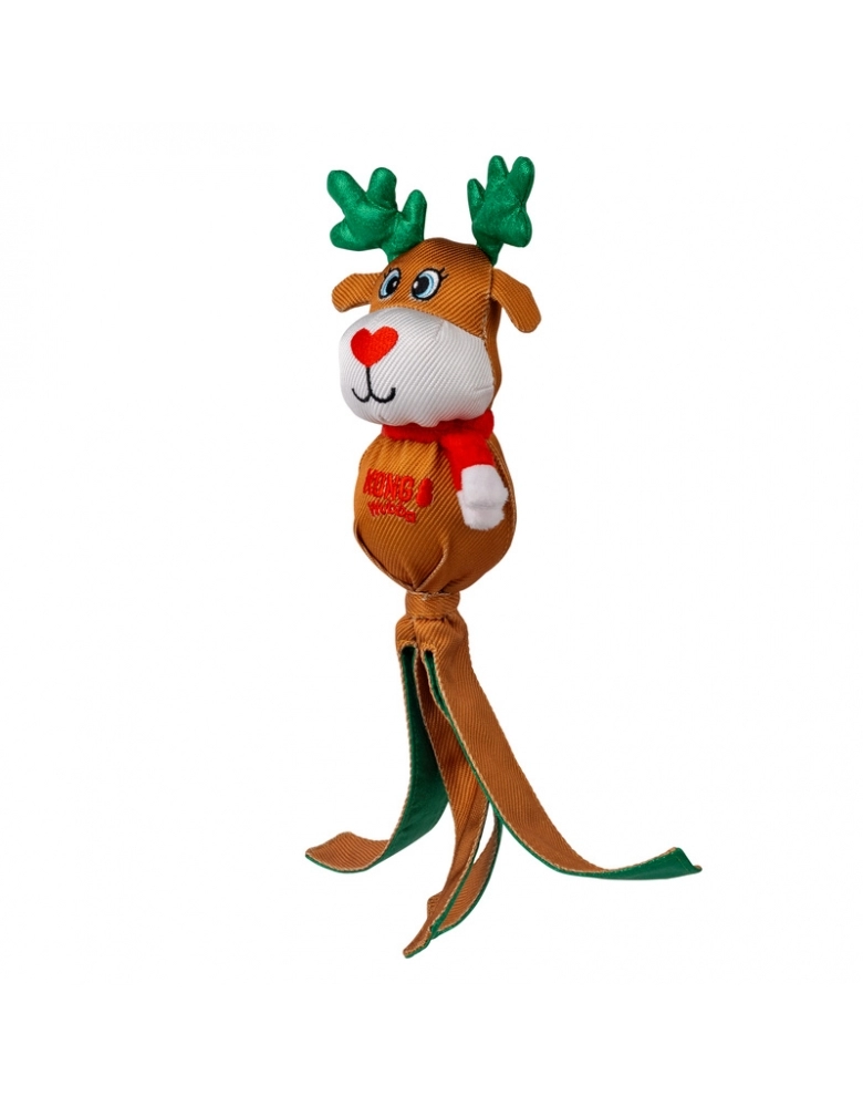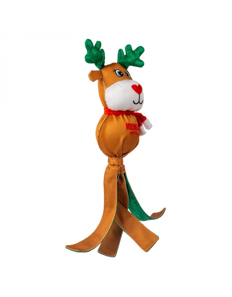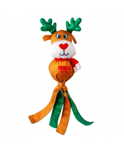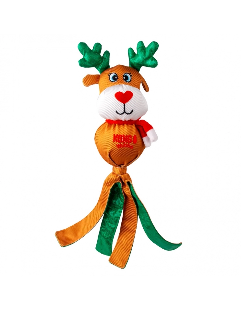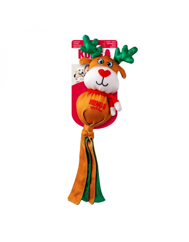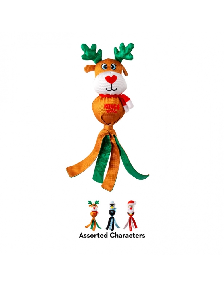 O KONG Holiday Wubba natalino oferece diversão festiva em um brinquedo longo que satisfaz os instintos de se debater e puxar. As longas caudas revestidas com xadrez festivo convidam ao chacoalhar, enquanto o apito mantém os cães envolvidos. Uma celebração natalina de brincadeiras interativas, este ursinho aconchegante também é um ótimo companheiro de cochilo para quem está hibernando! Indicado para cães de mordida leve.