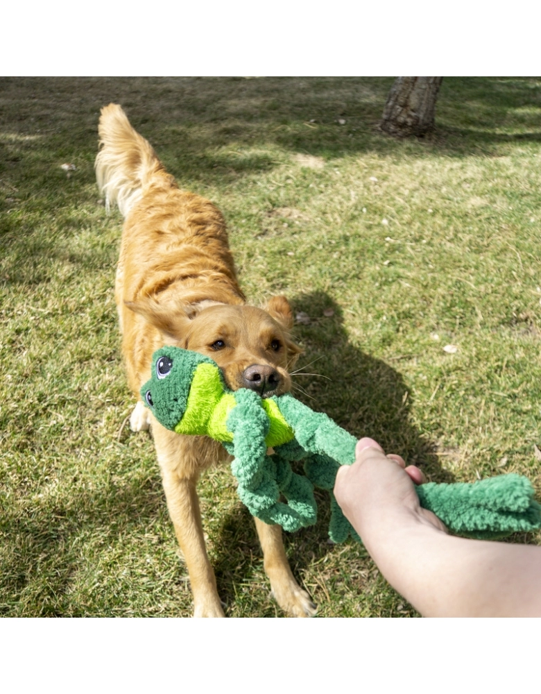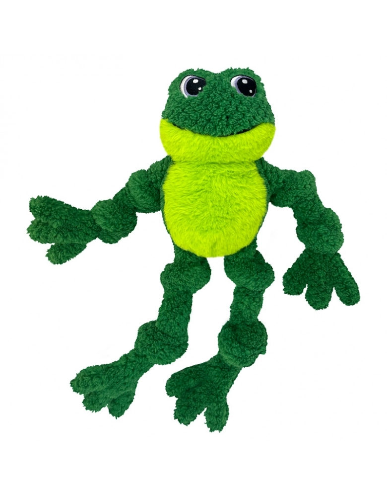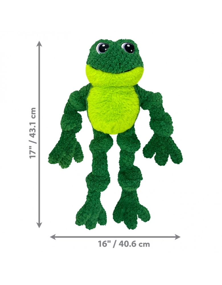 Kong Knots Frog é um brinquedo super grande (46cm) que possui corda com nós em toda sua extensão para proporcionar brincadeiras de cabo de guerra e de jogar e buscar, super divertidas. Sua estrutura aumenta a resistência e durabilidade. Além disso, é um ótimo brinquedo para aconchegar. Ideal para cães com mordidas leves a moderadas. Possui um apito na cabeça para aumentar o engajamento.