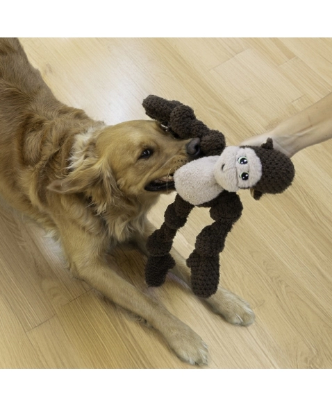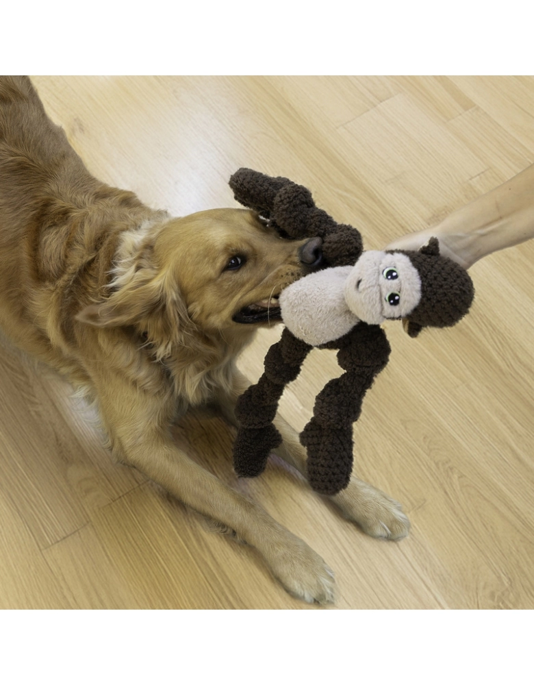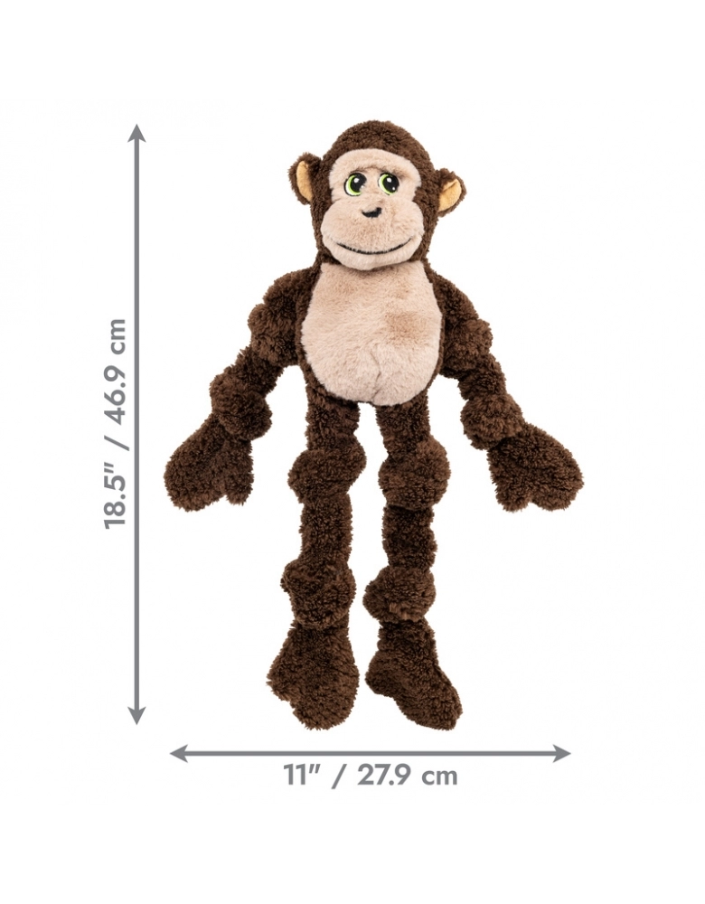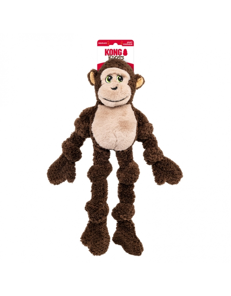 Kong Knots Monkey é um brinquedo super grande (46cm) que possui corda com nós em toda sua extensão para proporcionar brincadeiras de cabo de guerra e de jogar e buscar, super divertidas. Sua estrutura aumenta a resistência e durabilidade. Além disso, é um ótimo brinquedo para aconchegar. Ideal para cães com mordidas leves a moderadas. Possui um apito para aumentar o engajamento.