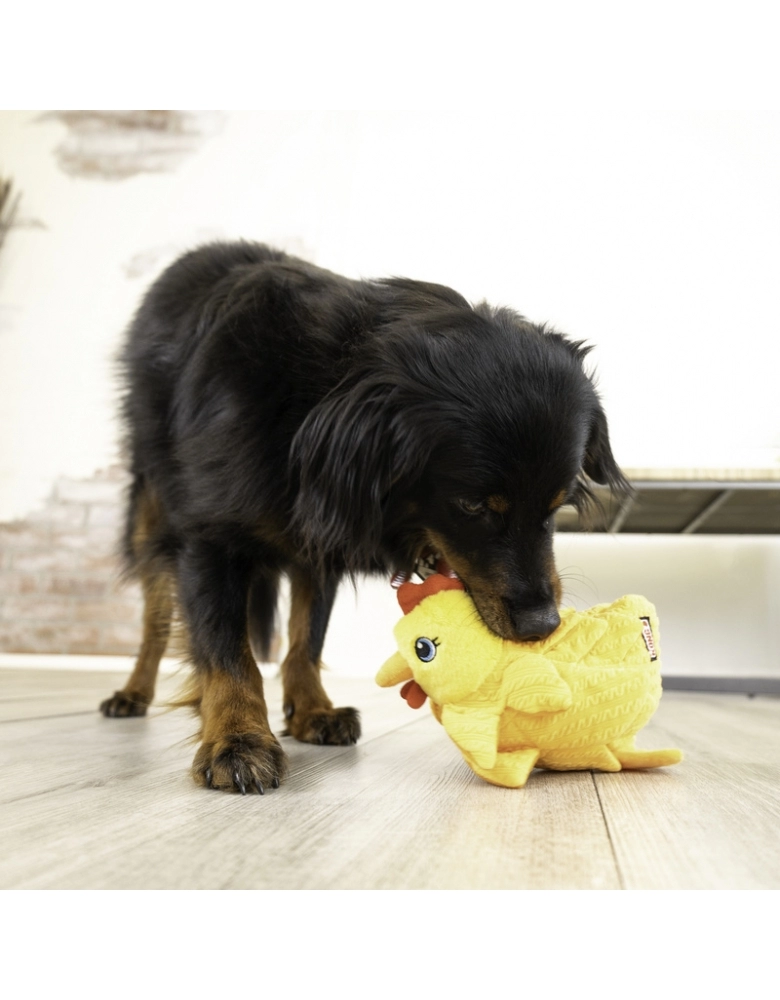 Importante: Não é um objeto de roer. Não deve ser deixado sozinho com o cão até ter certeza de que o cão não irá destruí-lo, nem por alguns minutos. Para cães com mordida forte e destrutivas, prefira os brinquedos de borracha natural. Se o cão pegar para roer e não estiver brincando da maneira adequada, remova e comece novamente até que ele aprenda. Acabada a brincadeira, guarde para a próxima.