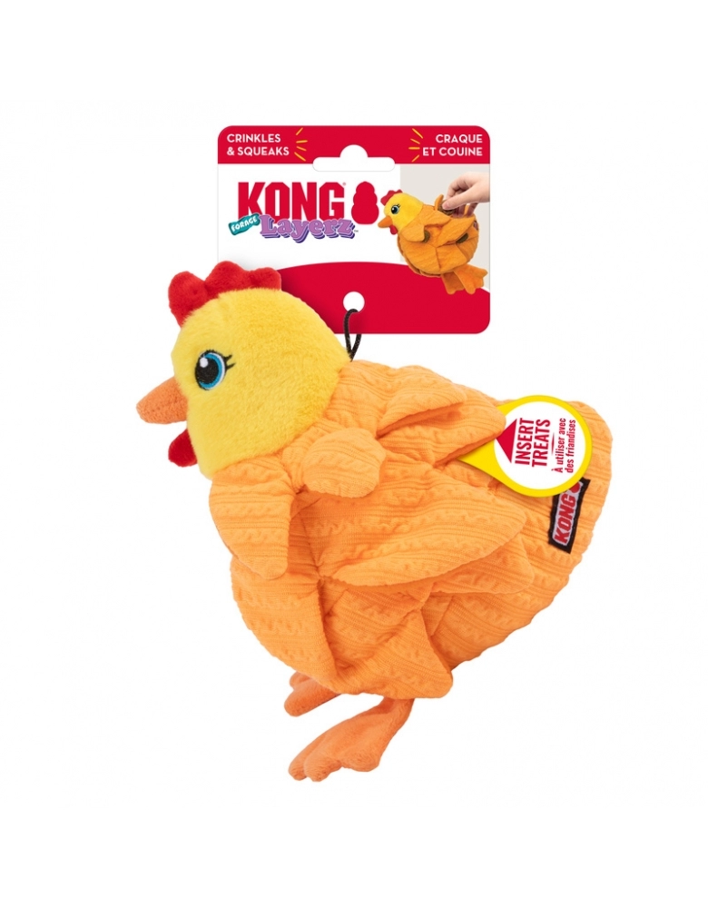 KONG Layerz Forage é um brinquedo desenvolvido para esconder petiscos entre suas camadas para estimular e satisfazer o instinto de forrageio (farejar para encontrar alimento) dos cães. Possui tecido e costuras resistentes. Apresenta estalidos e apitos pelo corpo para estimular os instintos naturais de caça dos cães. Divertido de morder e chacoalhar, enquanto o alimento ou petiscos caem de seu corpo durante as brincadeiras.