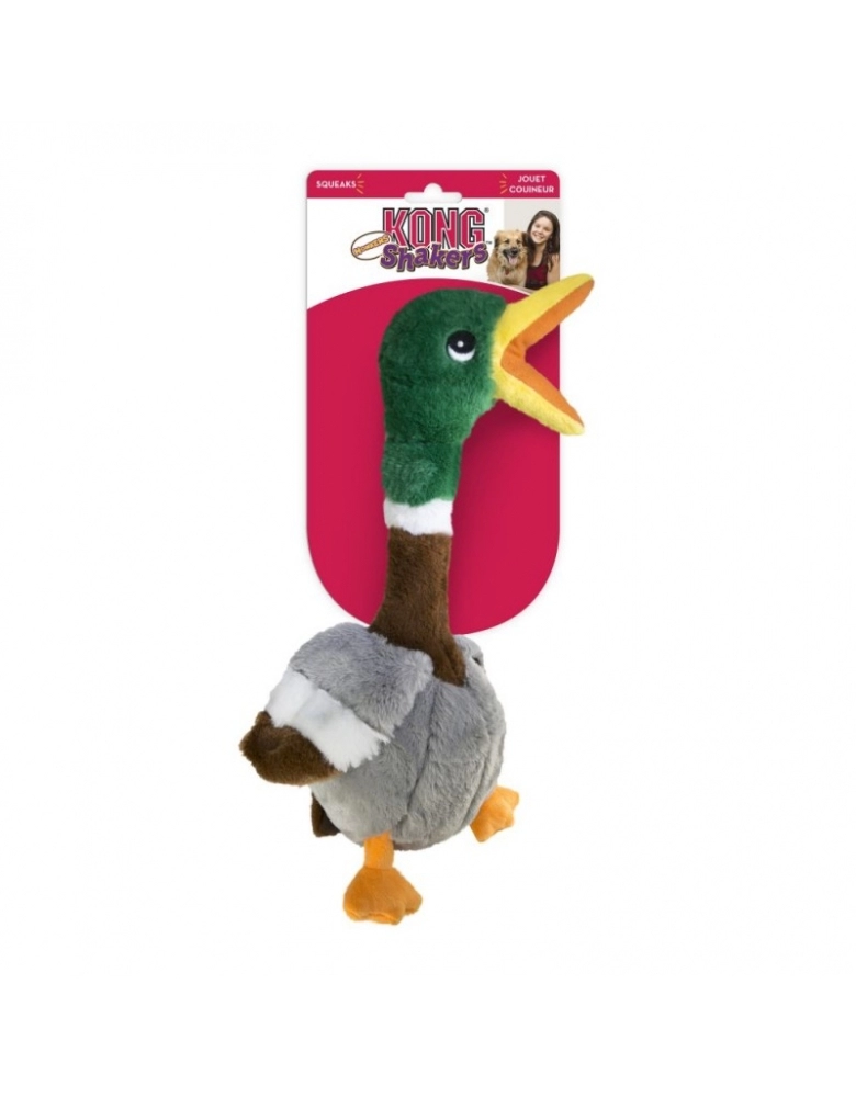 KONG Shakers Honkers deixa a diversão voar com um pescoço interno apresenta uma textura que satisfaz os cães ?? instintos naturais de mastigação, enquanto as longas pernas flácidas estimulam sessões de jogo de agitação e puxões. O tom baixo do KONG Shakers Honkers grasna e o design de pelúcia reforçado mantém os cães rosados e brincam por mais tempo.