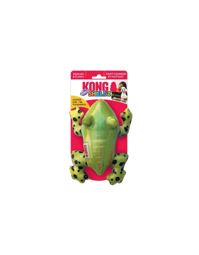 KONG Shieldz Tropics é um brinquedo desenvolvido para cães de mordida leve e não destruidores. São recompensadores para cães que usam brinquedos para morder (não roer). Possuem uma “selagem” exterior que dá um aspecto “emborrachado” para aumentar