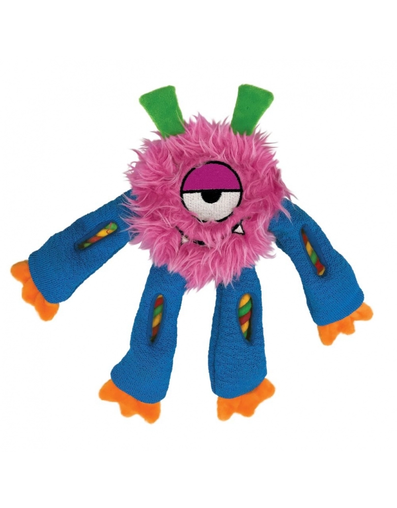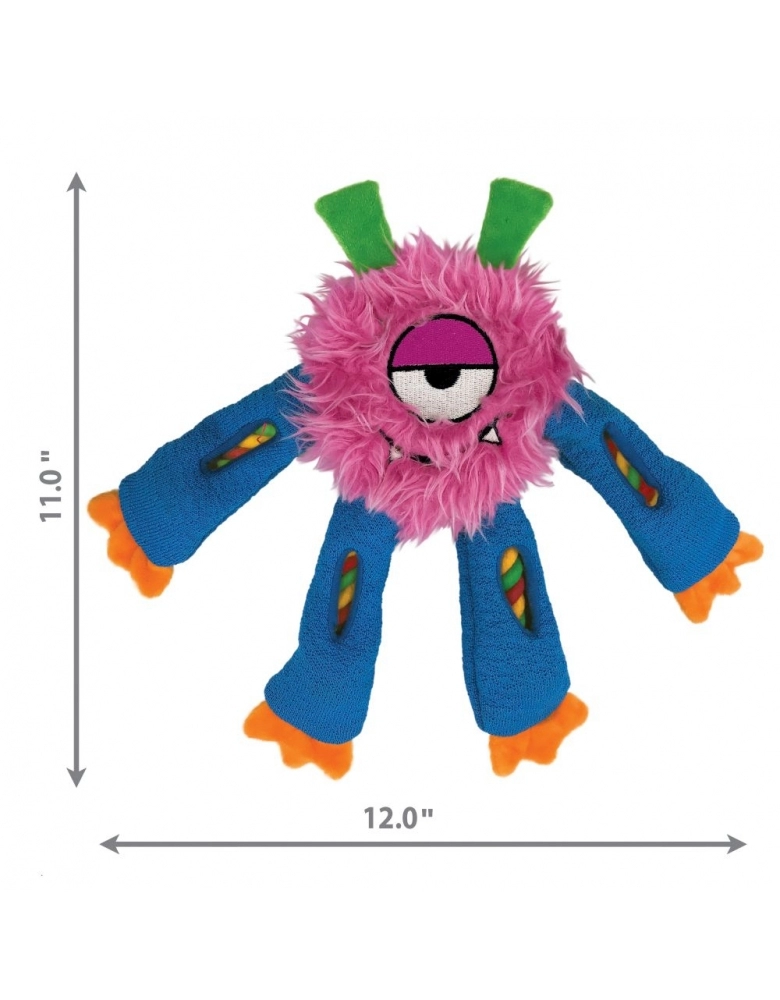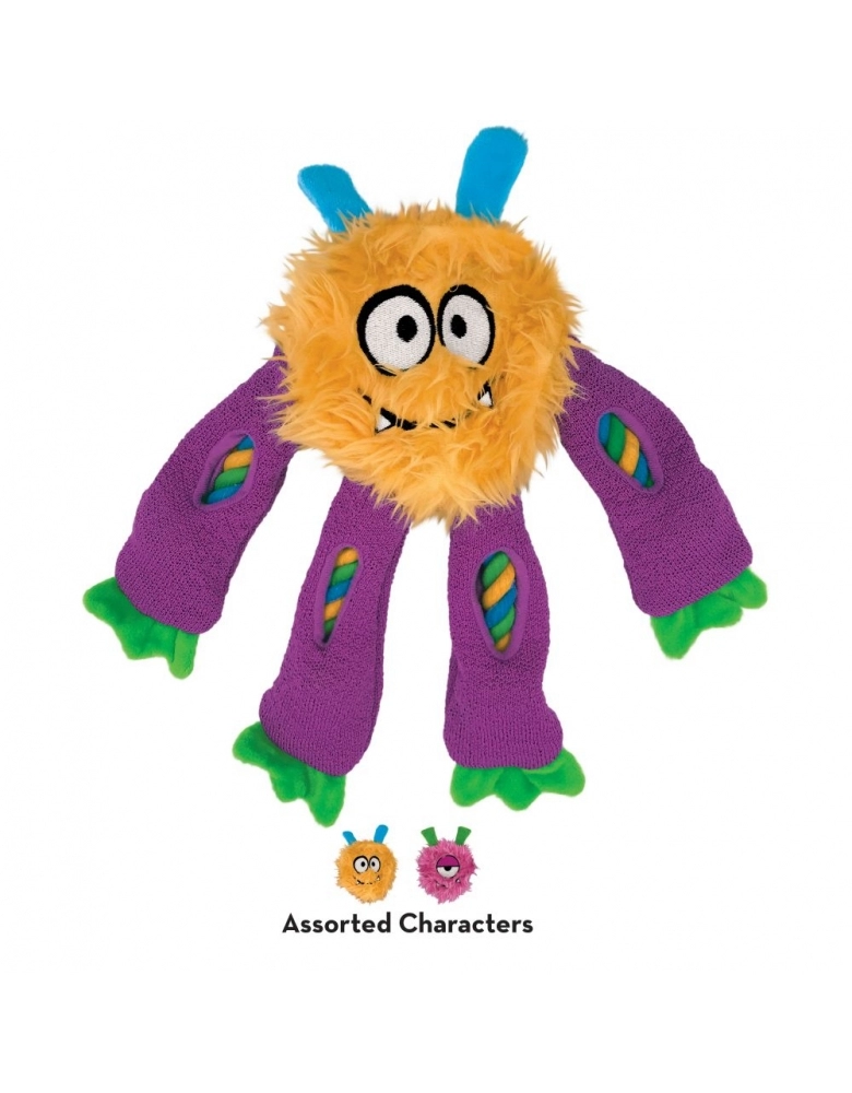 KONG Sneakerz Knots é um brinquedo feito para brincadeiras interativas. Feito com tecido de tênis de correr, reforçado para uma brincadeira mais duradoura. Possui apitos nas pernas e braços para estimular ainda mais a brincadeira. Possui uma corda interna que satisfaz instintos de mastigação. Pernas e braços soltos para estimular o instinto de chacoalhar a presa. Destinado a cães de mordida leve/moderada.