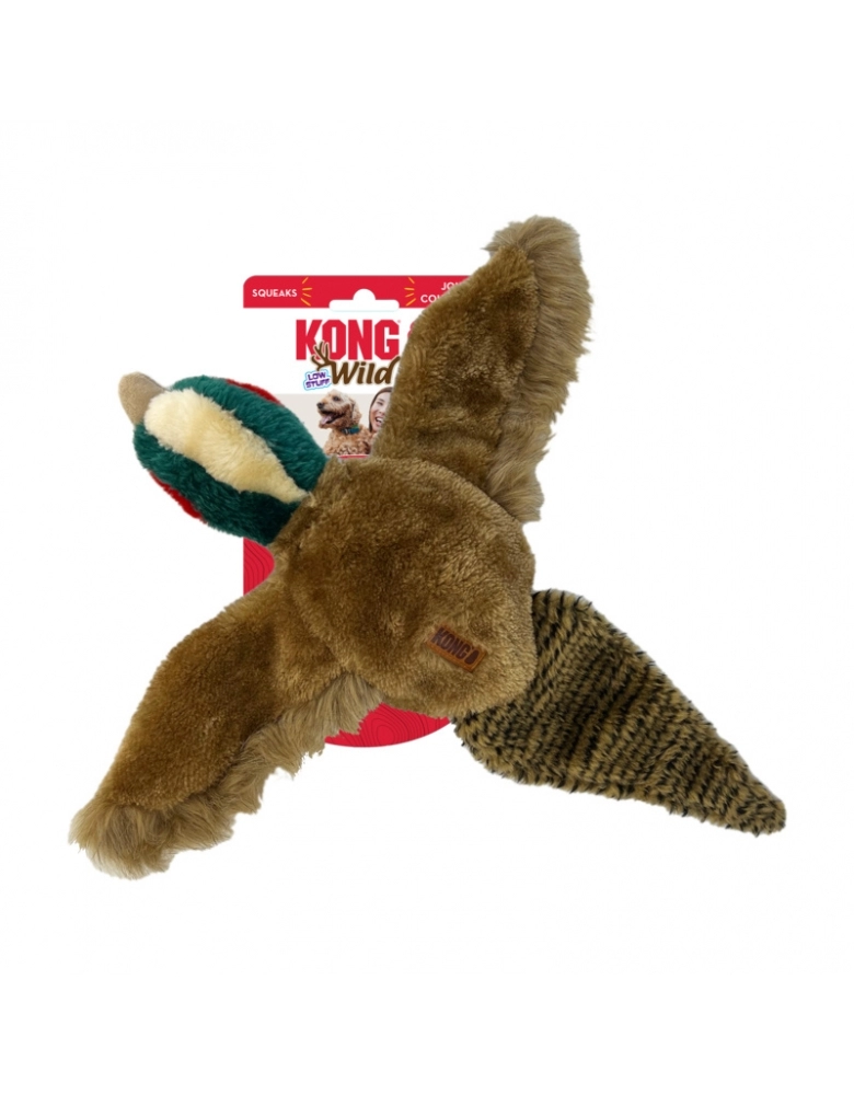 KONG Wild Low Stuff é um brinquedo desenvolvido para cães de mordida leve e não destruidores. Pelúcia mais realista, que imita criaturas com bastante pelo e fofas, que aguça os instintos primitivos dos cães. Possui uma pelúcia densa, porém menos enchimento, o que proporciona menos bagunça, caso sejam rompidas. Possui apito para prolongar as brincadeiras.