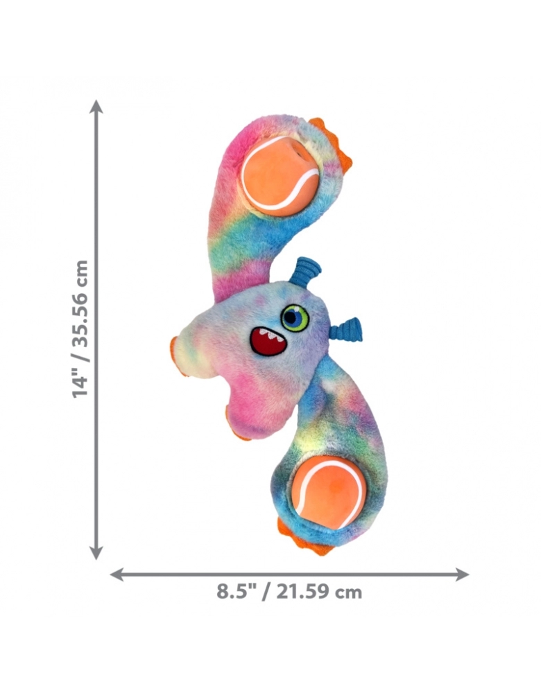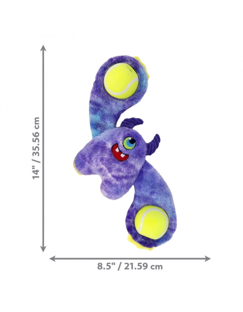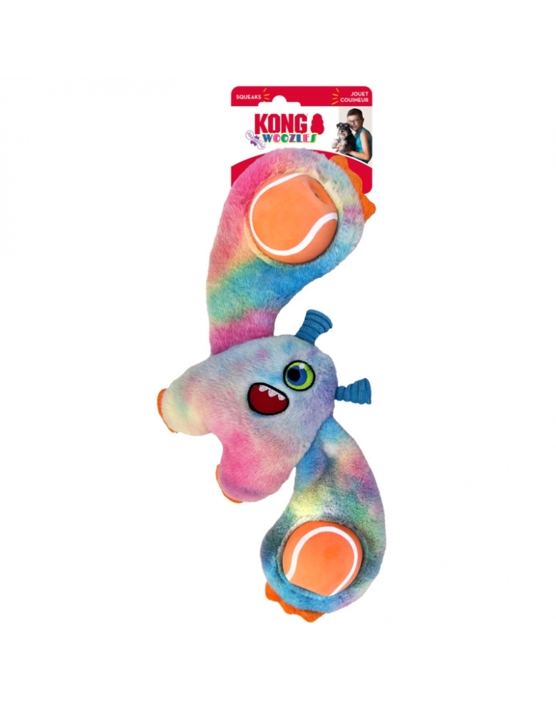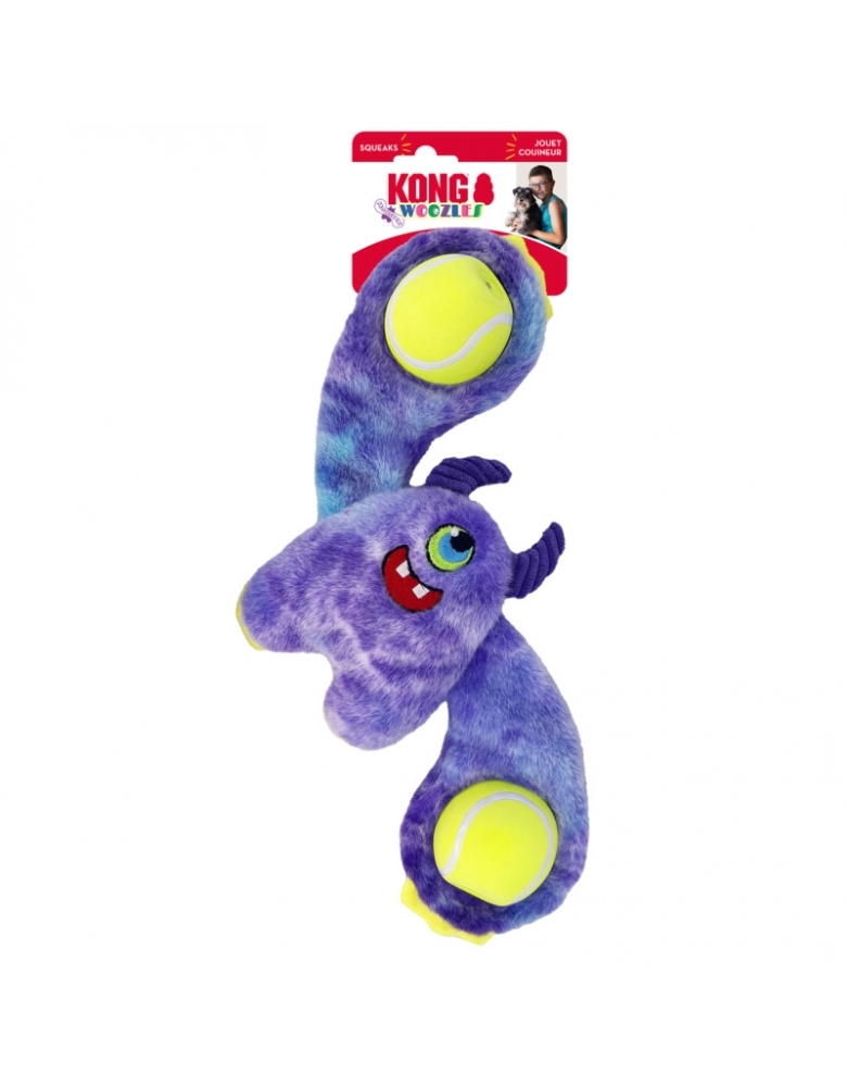 KONG Woozles Monster é um brinquedo desenvolvido para cães de mordida leve e não destruidores. São 2 bolas, com apito, uma a de cada lado, que tornam o brinquedo fácil de pegar e extremamente atrativo. Ideal para brincadeiras leves de jogar e trazer e aconchegar. O corpo também possui um apito. Os braços longos tornam o ato de chacoalhar ainda mais prazeiroso.