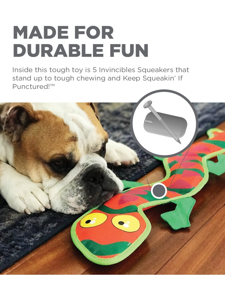 Dedicado à cães de mordida moderada a forte. Construído com o que há de mais resistente pela Outward Hound, tornando-se o brinquedo mais resistente da marca. Possui um liner especial K9, tecido de mangueira de bombeiro e apitos chamados “invencibles” que continuam apitando mesmo que perfurados. Seu corpo achatado e com os apitos encapados tornam um brinquedo ideal para lutas intermináveis e brincadeiras de cabo de guerra. 60cm de pura diversão.