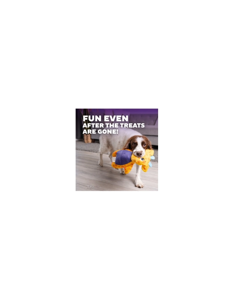 O quebra-cabeça de pelúcia para cães Nina Ottosson Puzzle Palz combina um brinquedo de pelúcia para cães com um quebra-cabeça de petiscos para cães, proporcionando uma diversão estimulante que seu cão não conseguirá resistir! Esse brinquedo acrescenta um desafio mental às brincadeiras enquanto ele se esforça para retirar os petiscos dos bolsos ocultos. Ele usará o cérebro, as patas e o nariz para buscar as recompensas. Mesmo depois que as guloseimas acabarem, os sons, textura e o apito mantém o interesse de seu cão.