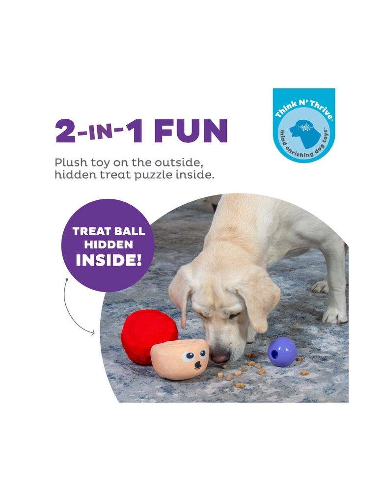 O quebra-cabeça para cães Nina Ottosson by Outward Hound Big Mouthz combina um brinquedo de pelúcia para cães com uma bola distribuidora de guloseimas para uma diversão estimulante que o seu cão não conseguirá resistir! Carregue a bola com petiscos, esconda-a dentro do brinquedo de pelúcia e deixe seu cão liberar suas habilidades de resolução de problemas. Ele usará as patas e o nariz para recuperar a bola e obter as saborosas recompensas. Mesmo depois que as guloseimas acabarem, os sons do brinquedo de pelúcia mantêm o interesse de seu cão e prolongam a diversão.