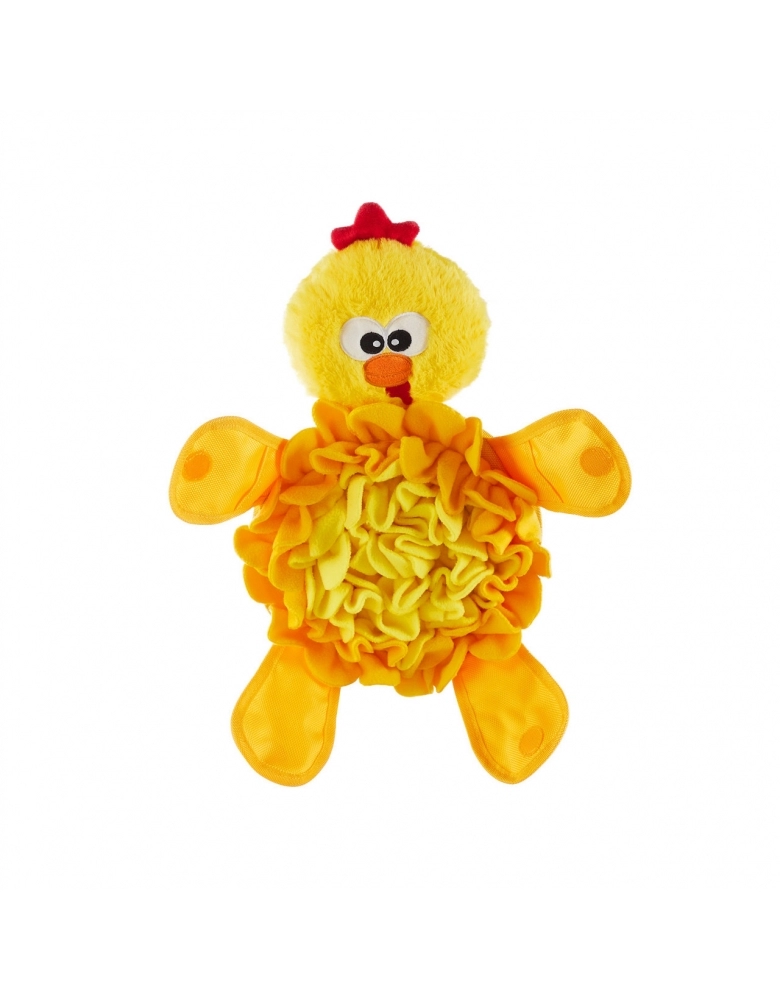 O quebra-cabeça de pelúcia para cães Snuffle Palz da Nina combina um brinquedo de pelúcia para cães, um tapete antiderrapante e um quebra-cabeça de petiscos, proporcionando uma diversão estimulante para o cérebro à qual o seu cão não resistirá! Esse brinquedo para cães acrescenta um desafio mental às brincadeiras do seu cão, estimulando seus sentidos enquanto ele se esforça para desembrulhar as pernas do brinquedo e remover os petiscos do tapete de pelúcia e dos bolsos ocultos. Modo de usar: Coloque as guloseimas no material do entre as camadas de tecido e dos bolsos, cubra o tapete com as pernas e deixe seu cão liberar suas habilidades de resolução de problemas. Mesmo depois que as guloseimas acabarem, o material de pelúcia e os sons do apito e textura mantém interesse do seu cão.