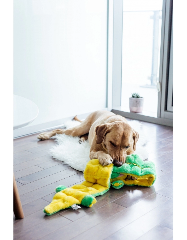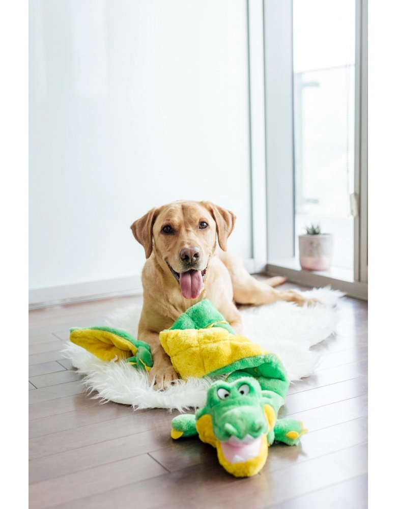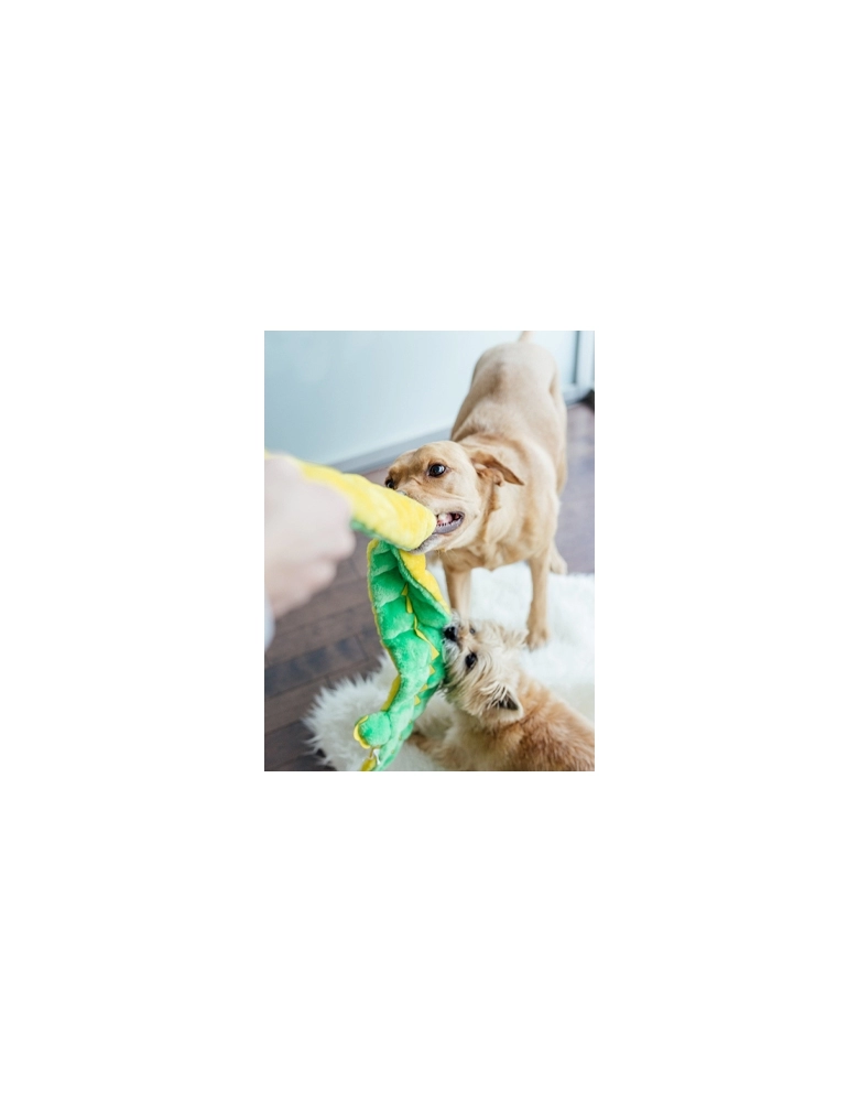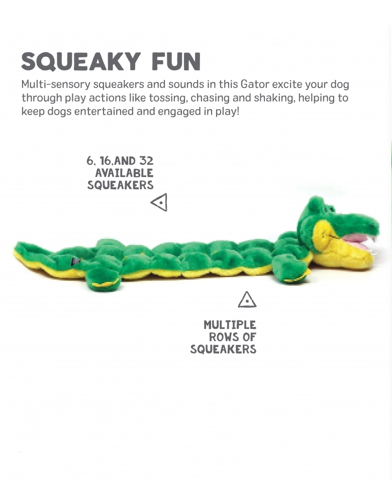 Brinquedo para aconchegar e divertir. Pelúcia dedicada à cães de mordida moderada que possui múltiplos apitos para manter a atenção dos cães. Possui mínima estufagem para a mínima bagunça em sua casa em caso de ruptura. Seu corpo achatado e com os apitos encapados tornam um brinquedo ideal para lutas intermináveis e brincadeiras de cabo de guerra. O tamanho XL possui 16 apitos e o XXL, 32.
