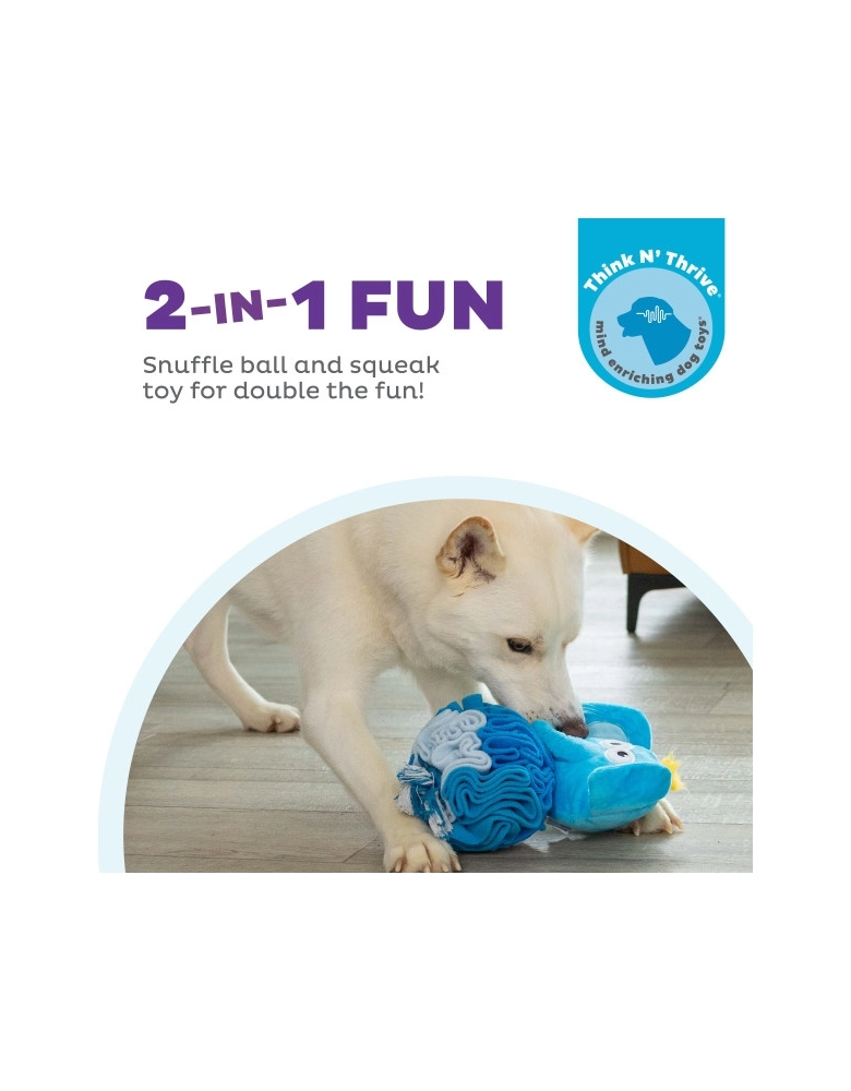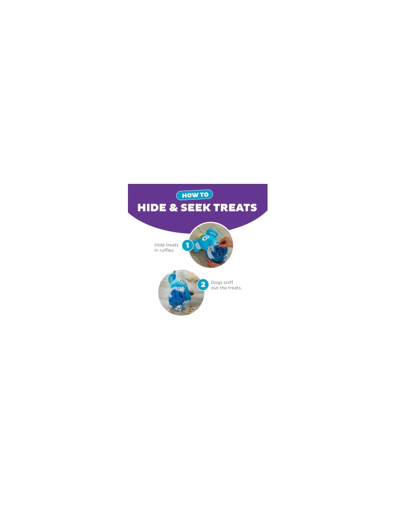 O quebra-cabeça de pelúcia para cães Nina Ottosson by Outward Hound Stuff N' Snuffle combina um brinquedo de pelúcia para cães e uma bola para criar um quebra-cabeça divertido e estimulante para o cérebro, ao qual o seu cão não resistirá! Esse brinquedo para cães acrescenta um desafio mental às brincadeiras enquanto ele fareja as guloseimas escondidas no material de várias camadas. Coloque as guloseimas na bola de tecido e deixe seu cão liberar suas habilidades de resolução de problemas. Mesmo depois que as guloseimas acabarem, o material de pelúcia, o corpo de corda e os sons estridentes do brinquedo para cães mantêm o interesse do seu cão. Modo de usar. Esconda petiscos por todas as camadas de tecido do brinquedo. Observe e ajude seu cão nas primeiras vezes para que aprenda.