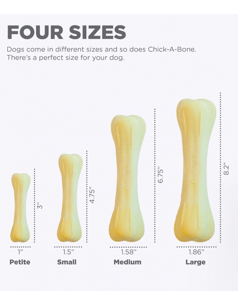 Satisfaça os instintos naturais de seu cão com Chick A Bone da Petstages ! Feito com uma mistura de ingredientes nobres e duráveis. Tem um gosto irresistível de frango que seu cão irá amar! Formato ergonômico de fácil pegada e perfeito para ser roído. Fabricado nos EUA livre de chumbo e ftalato. Disponível em 3 tamanhos. Ajuda a encorajar comportamento desejável de morder/roer. Muito mais atrativo que os móveis