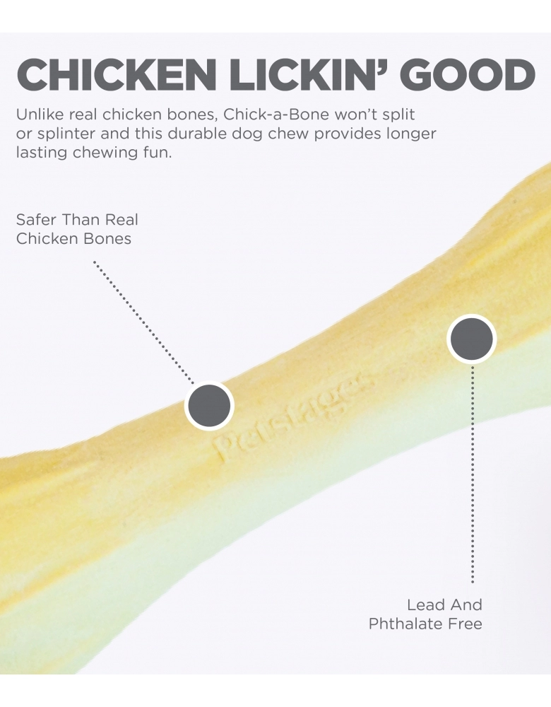 Satisfaça os instintos naturais de seu cão com Chick A Bone da Petstages ! Feito com uma mistura de ingredientes nobres e duráveis. Tem um gosto irresistível de frango que seu cão irá amar! Formato ergonômico de fácil pegada e perfeito para ser roído. Fabricado nos EUA livre de chumbo e ftalato. Disponível em 3 tamanhos. Ajuda a encorajar comportamento desejável de morder/roer. Muito mais atrativo que os móveis