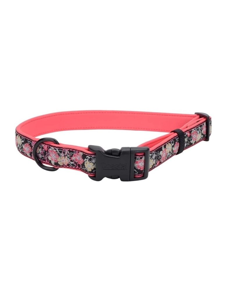 Petiscos>COASTAL COLEIRA RIBBON WEAVE PINK YELLOW FLOWERS ON BLACK L (15971 - PYF26)