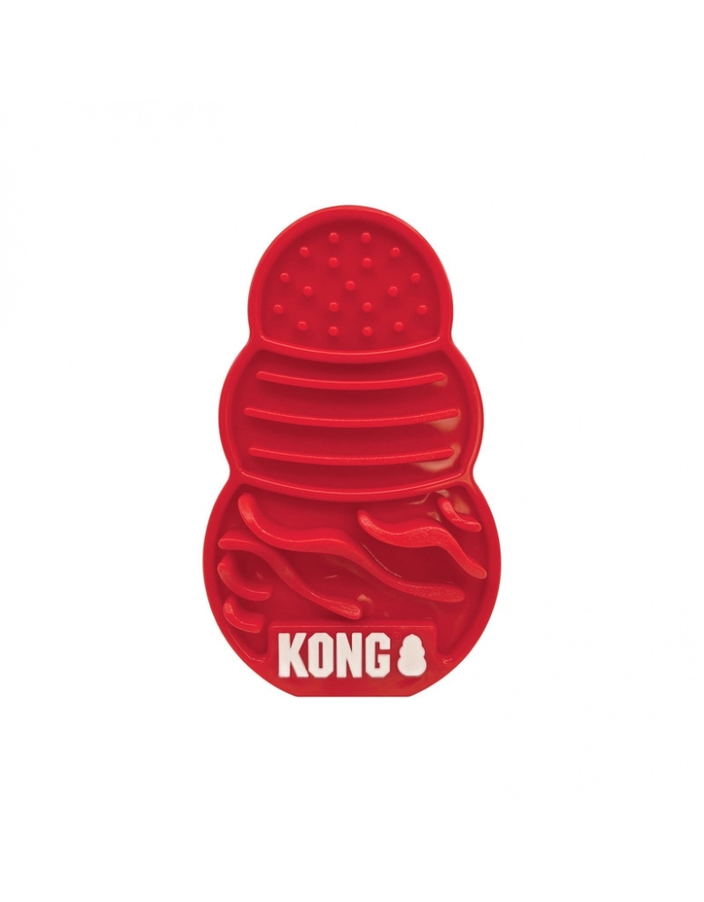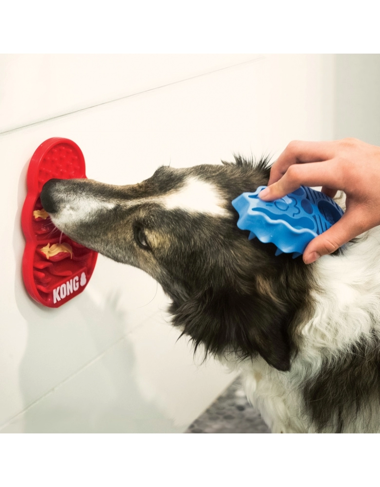 KONG Licks é um brinquedo feito para que o cachorro lamba o conteúdo e, com isso, alivie o estresse, sinta prazer, se distraia e contribua para a limpeza oral. Contém 2 ventosas que aderem à qualquer superfície lisa. Ideal para ser usado com pasta de amendoim e outros petiscos pastosos ou até sólidos. As diferentes superfícies servem para segurar alimento e mudar o desafio durante a sessão de lambidas.