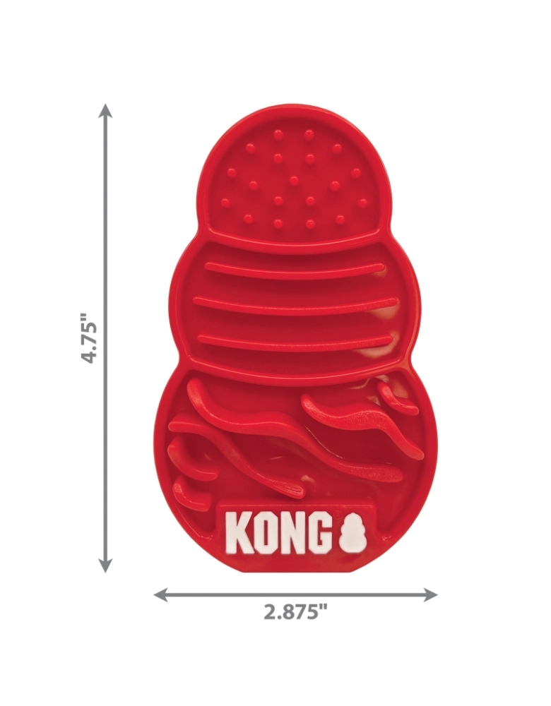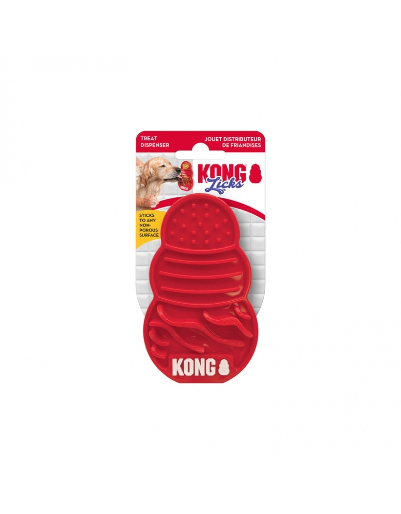KONG Licks é um brinquedo feito para que o cachorro lamba o conteúdo e, com isso, alivie o estresse, sinta prazer, se distraia e contribua para a limpeza oral. Contém 2 ventosas que aderem à qualquer superfície lisa. Ideal para ser usado com pasta de amendoim e outros petiscos pastosos ou até sólidos. As diferentes superfícies servem para segurar alimento e mudar o desafio durante a sessão de lambidas.