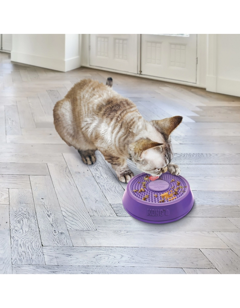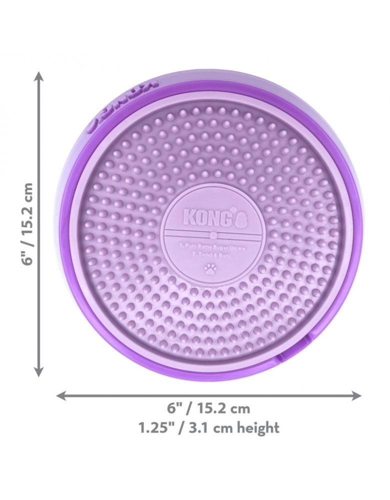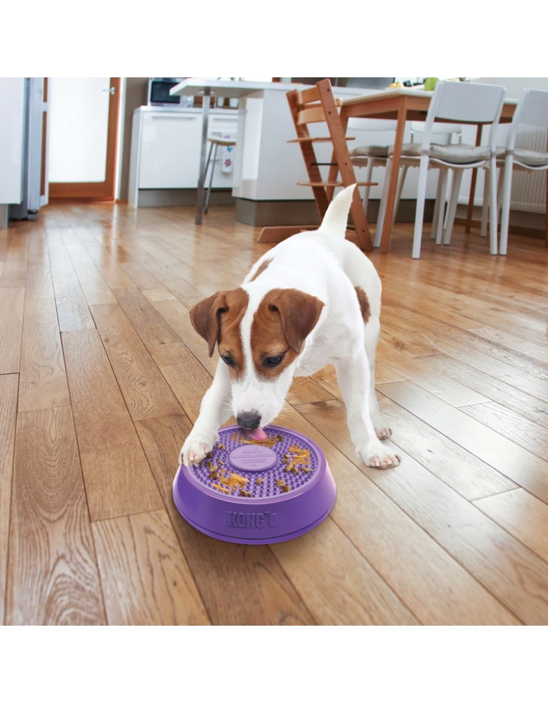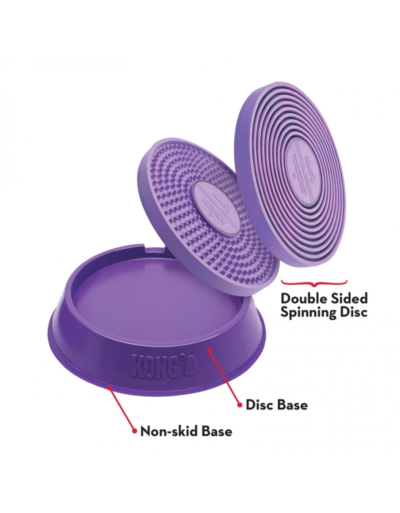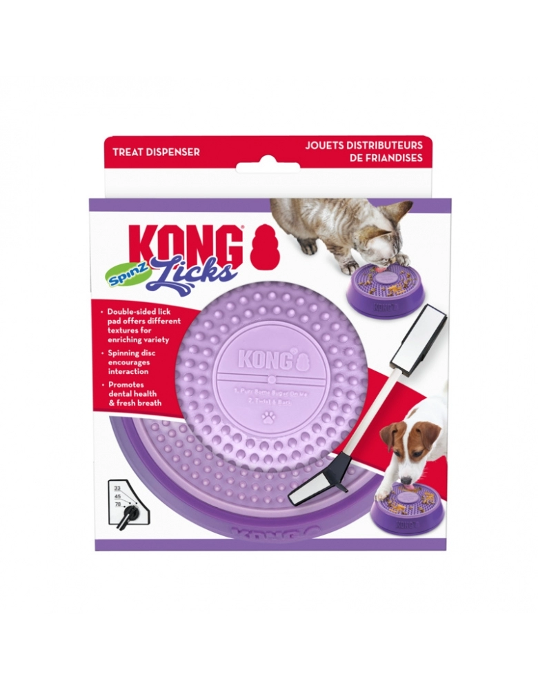 KONG Licks Spinz é um tapete de lamber muito mais divertido e desafiador que um brinquedo comum, pois o disco de lamber gira e seu “DJ Canino” vai lamber e girá-lo e essa atividade vai gerar hormônios de felicidade. O disco interno possui dois lados com texturas diferentes para variar a dificuldade e é removível para uma limpeza mais fácil. O ato de lamber ajuda na saúde mental e também a manter uma saúde oral melhor, especialmente limpando a língua do cão, ajudando a amenizar o hálito. Possui uma base anti-derrapante para manter o brinquedo no lugar.