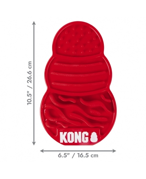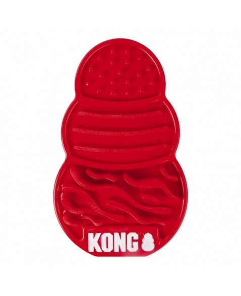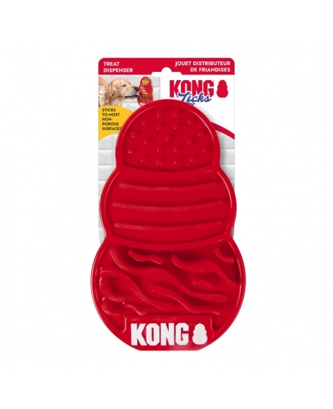 KONG Licks é um brinquedo feito para que o cachorro lamba o conteúdo e, com isso, alivie o estresse, sinta prazer, se distraia e contribua para a limpeza oral. Contém 2 ventosas que aderem à qualquer superfície lisa. Ideal para ser usado com pasta de amendoim e outros petiscos pastosos ou até sólidos. As diferentes superfícies servem para segurar alimento e mudar o desafio durante a sessão de lambidas.