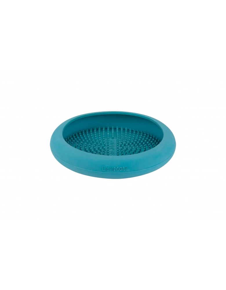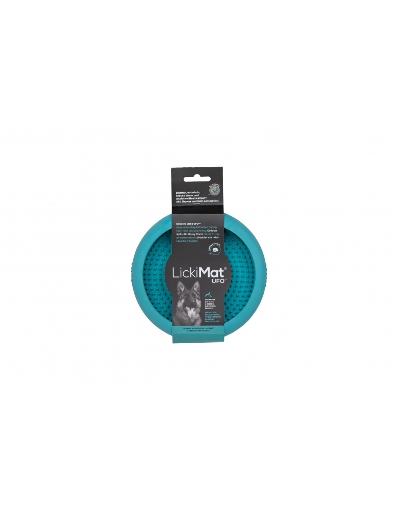 O ato de lamber libera endorfina. Os cães lambem para se acalmarem quando estressados. Por isso a Lickimat lança produtos perfeitos para ansiedade, distração, banho e tosa, treinamentos e tempestades por conta do medo de trovões. LickiMat Ufo é mais um produto da linha LickiMat que veio para inovar. É um produto que deve ser usado para colocar algum alimento pastoso para fazer que seu cão lamba, permitindo que fique distraído em situações potencialmente desconfortáveis como banhos e tosa. Evita que alimento caia no chão, por isso, excelente para passeios de carro. Ideal para alimentos crus e faz com que o cão coma lentamente. Indicado para cães de todas as idades e tamanhos.