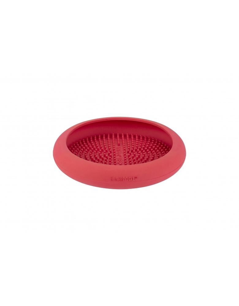 O ato de lamber libera endorfina. Os cães lambem para se acalmarem quando estressados. Por isso a Lickimat lança produtos perfeitos para ansiedade, distração, banho e tosa, treinamentos e tempestades por conta do medo de trovões. LickiMat Ufo é mais um produto da linha LickiMat que veio para inovar. É um produto que deve ser usado para colocar algum alimento pastoso para fazer que seu cão lamba, permitindo que fique distraído em situações potencialmente desconfortáveis como banhos e tosa. Evita que alimento caia no chão, por isso, excelente para passeios de carro. Ideal para alimentos crus e faz com que o cão coma lentamente. Indicado para cães de todas as idades e tamanhos.