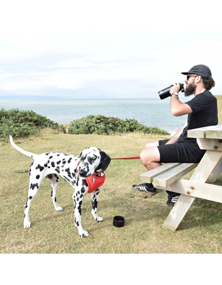 • Tampa 2 em 1 com compartimento separado para o cão e o dono beberem